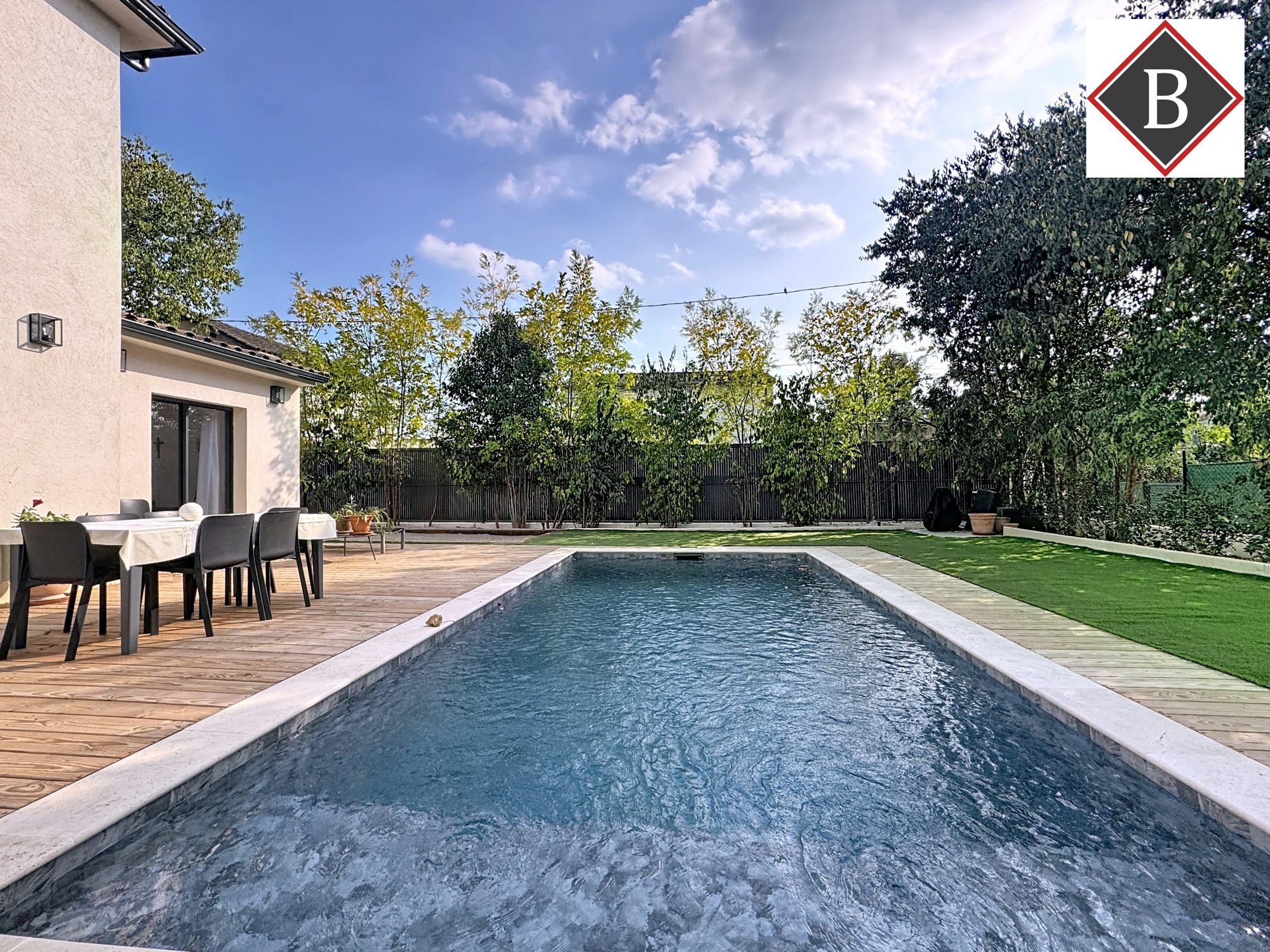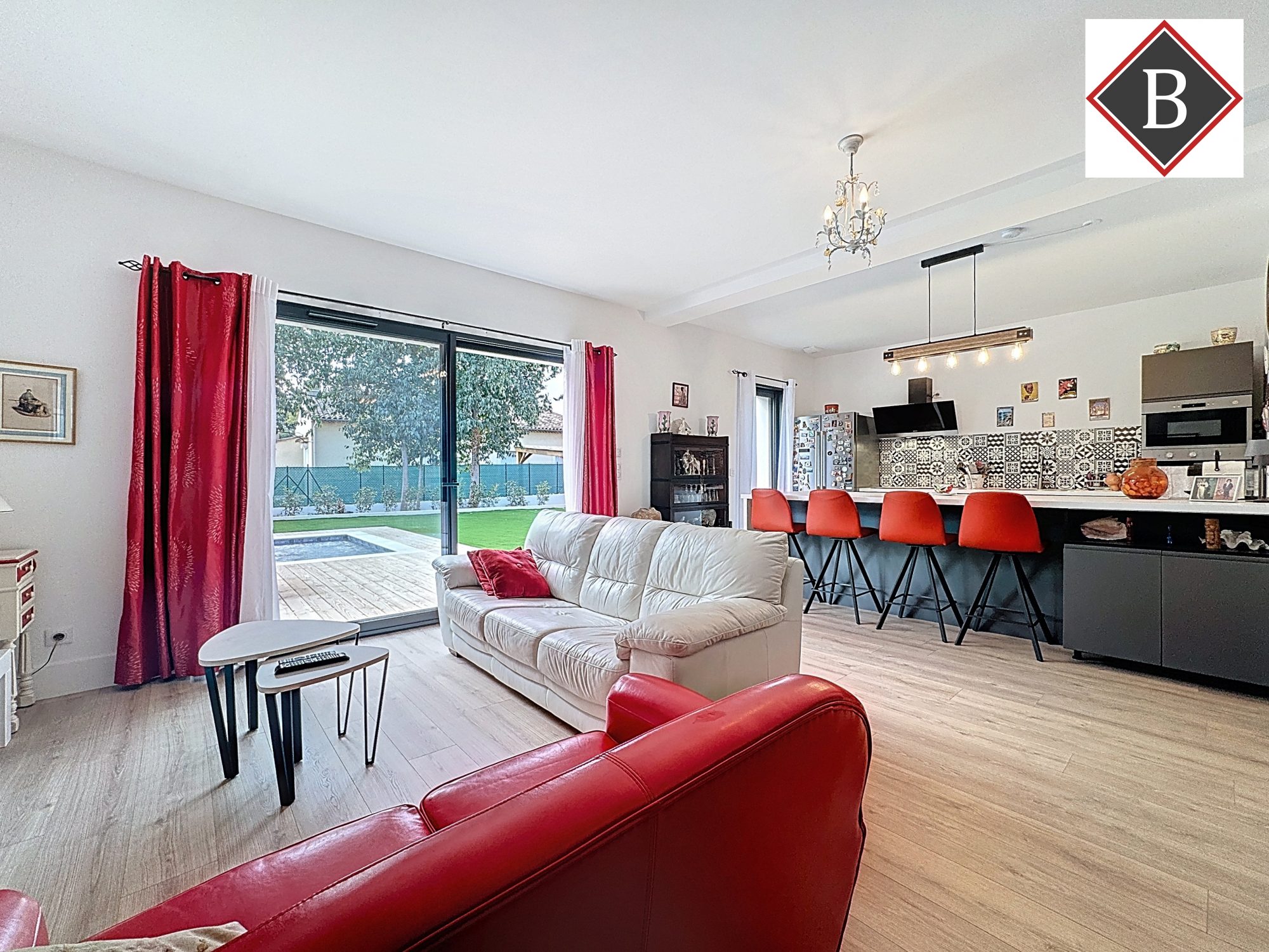Découvrez cette superbe villa neuve, construite en 2023, qui allie modernité et confort. Située dans un cadre idyllique, cette propriété semi plain-pied de 130.56 m² vous offre un havre de paix avec ses 4 chambres spacieuses, son séjour lumineux de 40 m², et ses 2 salles d'eau modernes. La cuisine américaine, aménagée et équipée, est un véritable atout pour les amateurs de cuisine. Profitez d'un jardin de 150 m² et d'une terrasse de 55 m², parfaits pour les repas en plein air et les moments de détente. La piscine de 7m x 3.50m est l'endroit idéal pour se rafraîchir pendant les chaudes journées d'été. La villa est partiellement meublée, ce qui facilite votre installation. Cette villa est isolée avec de la laine de verre soufflée ISOVER Isolène, garantissant une excellente isolation thermique et phonique. Les ouvertures en PVC à double vitrage assurent une sécurité optimale et une isolation supplémentaire. Le chauffage individuel et l'assainissement conforme complètent les équipements de cette propriété. Imaginez-vous vivre dans cette villa de rêve, où chaque détail a été pensé pour votre confort. Les hauteurs sous plafond de 2.50 m ajoutent une touche d'élégance et de spaciosité. La vue sur le jardin et la terrasse depuis le séjour est tout simplement magnifique. À proximité, vous trouverez plusieurs commodités : une crèche, une maternelle, une école élémentaire, des commerces d'alimentation générale, un restaurant, un parc et jardin, et un médecin généraliste. La villa est également éligible à l'internet haut débit. Ne manquez pas cette opportunité unique de vivre dans une villa de standing, où chaque jour sera une expérience de vie exceptionnelle.