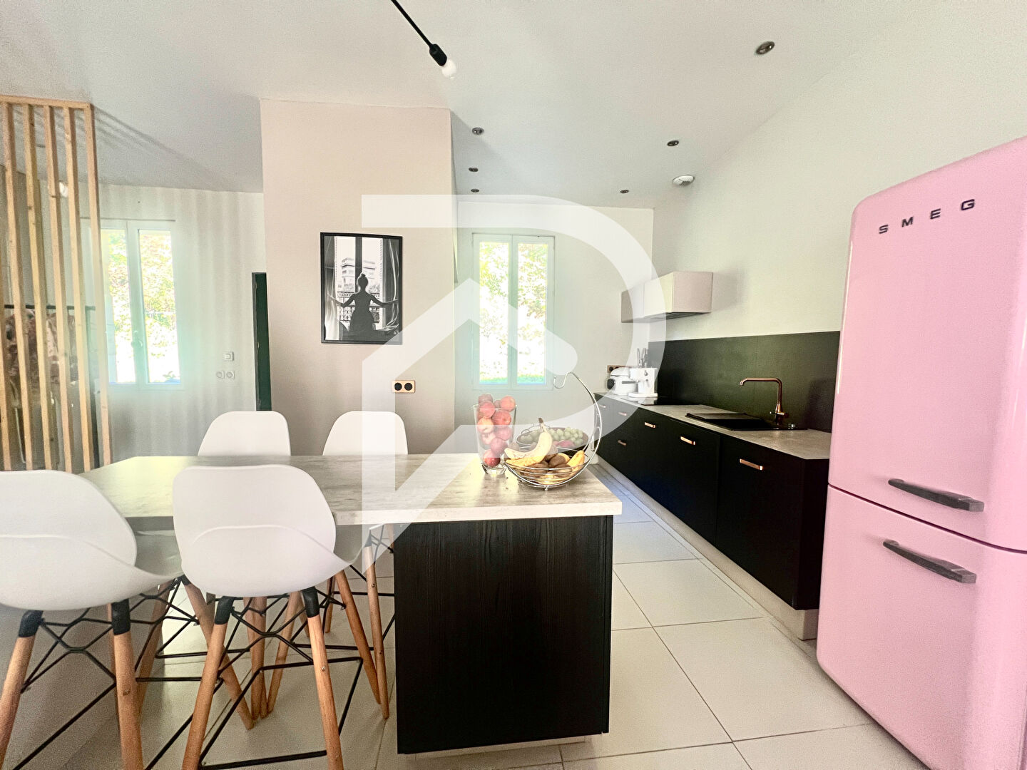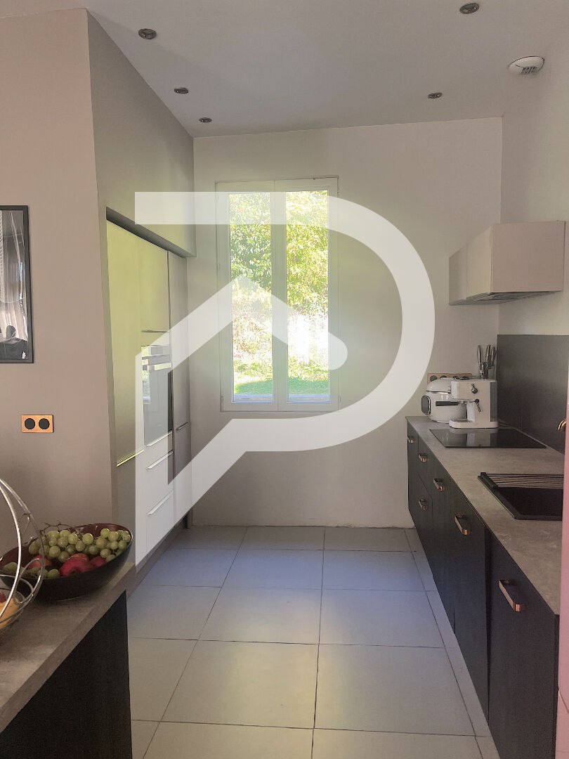 De plain pied, vous disposerez d'une pièce de vie d'environ 45 m2, traversante, lumineuse avec une cuisine aménagée et équipée. Vous apprécierez le volume ainsi que les nombreux rangements sur mesure qui permettent de définir les espaces de façon moderne et pratique.