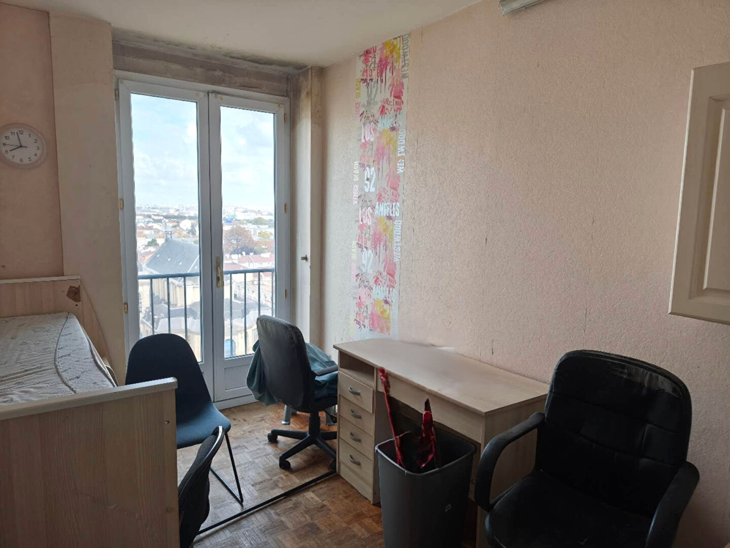 Traversant et lumineux, l'appartement bénéficie d'une vue dégagée avec un aperçu sur la Seine. Toutes les fenêtres sont en double vitrage. À l'origine un T3, le bien a été réaménagé par le propriétaire en plusieurs chambres indépendantes (chacune avec fenêtre) afin de maximiser la rentabilité locative.