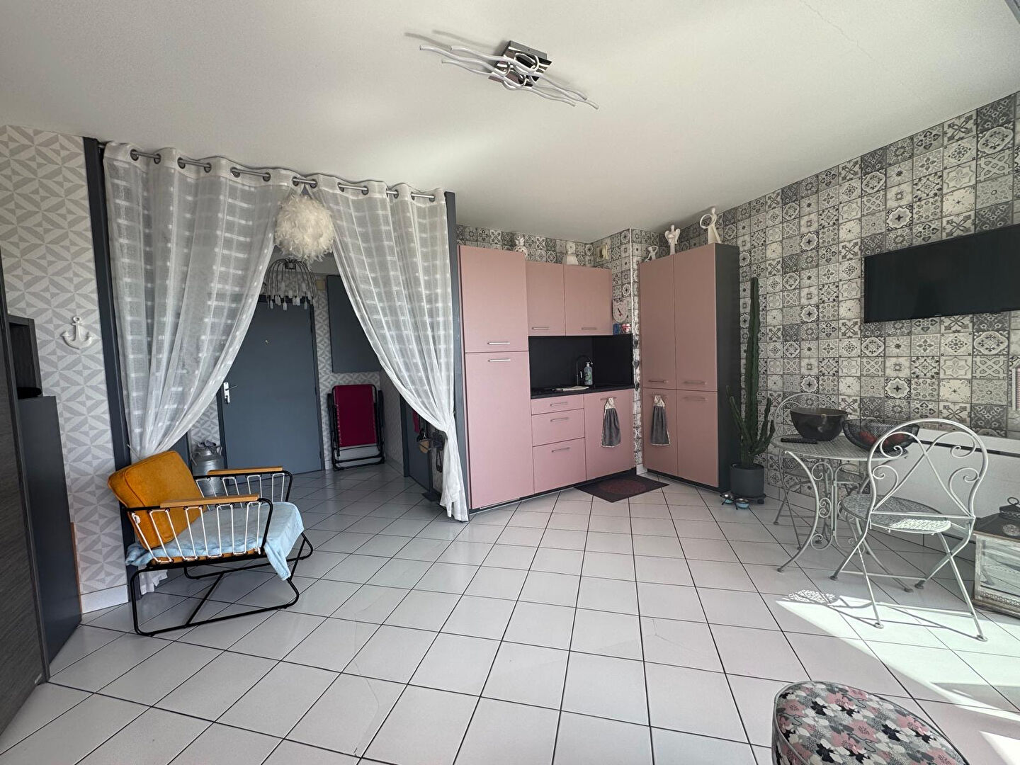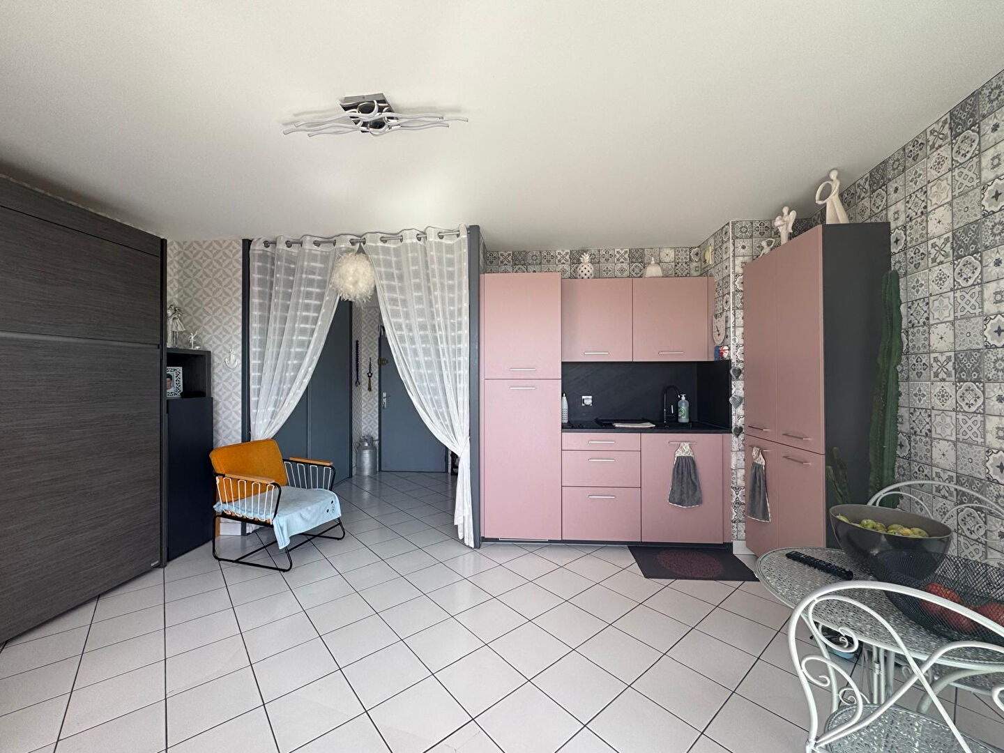 Studio situé au 4e étage avec ascenseur dans le quartier de Villes Martin à SAINT-NAZAIRE, offrant une vue sur la mer comprenant : une entrée, un séjour avec une cuisine ouverte, une salle de bains avec WC et une terrasse exposée plein SUD.