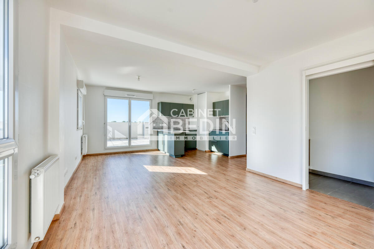 Exclusivité CABINET BEDIN - DUPLEX VILLENAVE D'ORNON. Découvrez ce duplex au dernier étage d'une résidence récente. Il offre une belle pièce de vie avec cuisine ouverte, une vaste terrasse ensoleillée, deux chambres, deux salles d'eau et deux WC. Initialement prévu pour trois chambres, le plan peut être facilement modifié. Profitez d'une vue à 360° sur le parc Trigant.