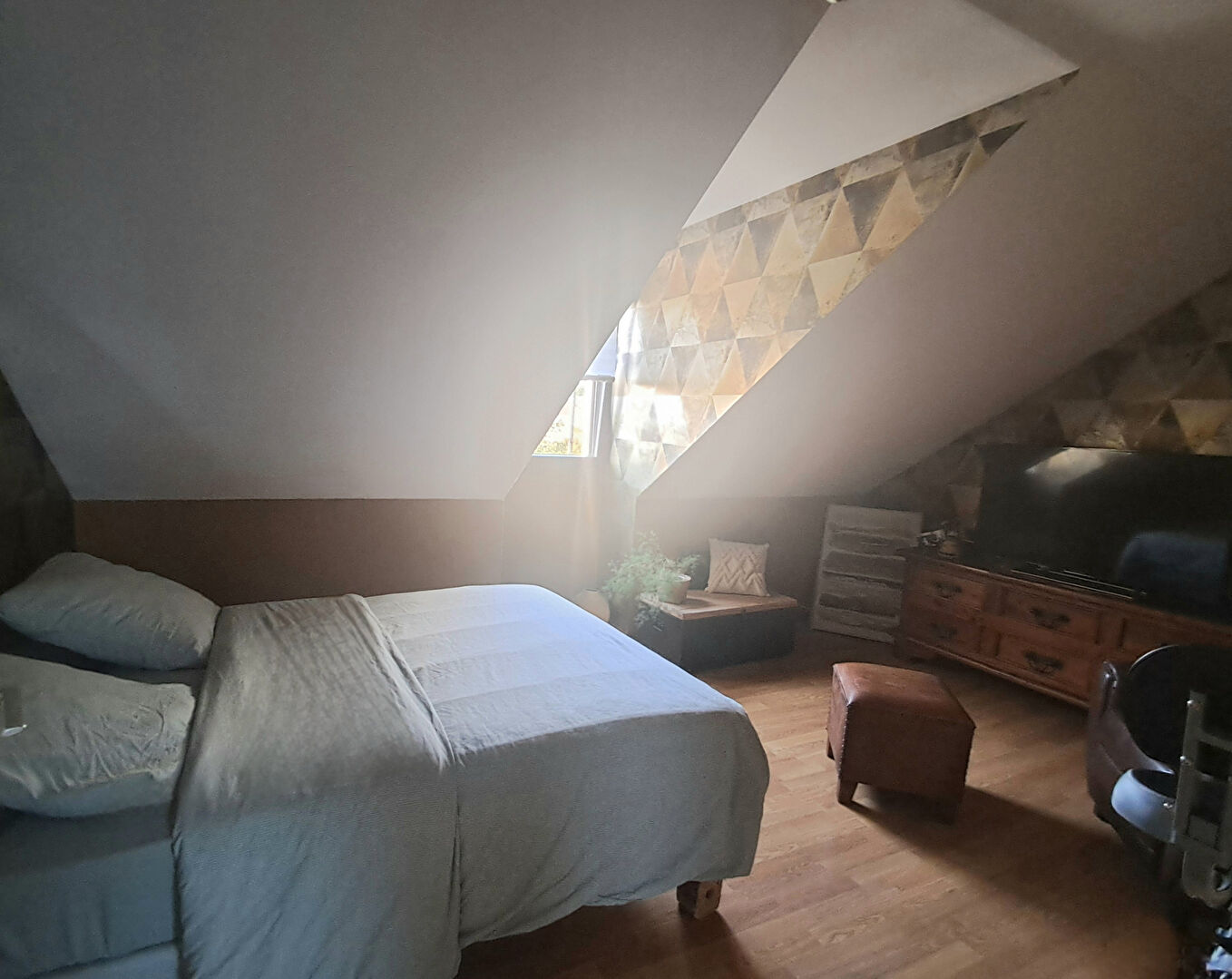 Votre futur cocon offre un vaste séjour lumineux avec cheminée et poêle à granulés, une cuisine équipée moderne, ainsi qu'un étage comprenant une mezzanine desservant trois chambres et une salle de bain.