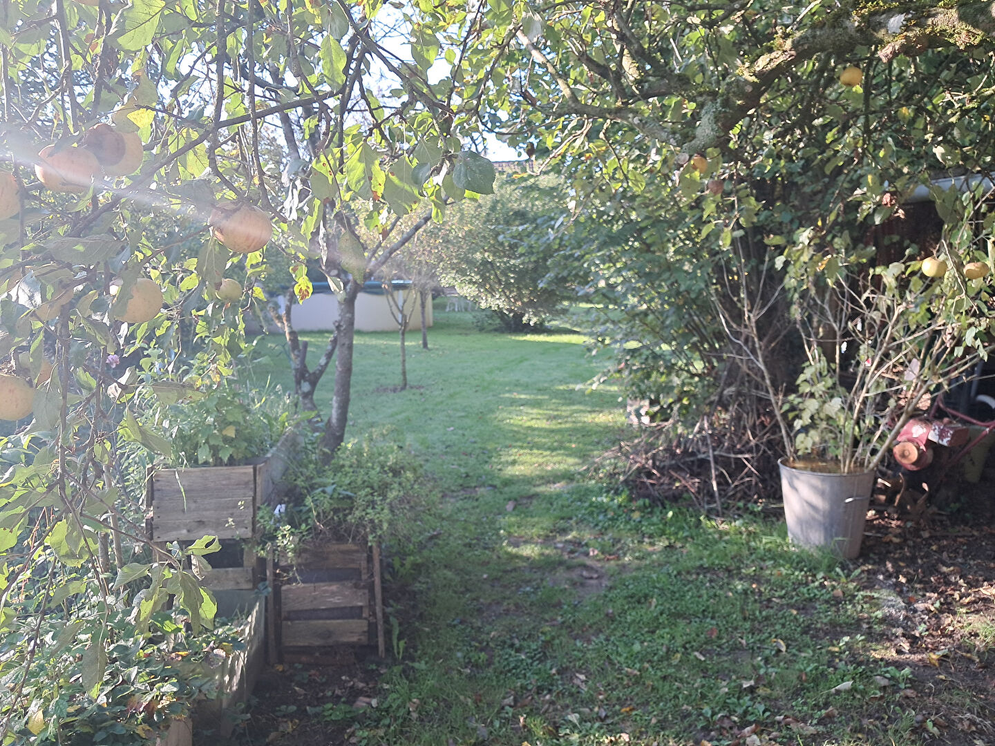Ce qui m'a charmé ? un beau jardin paysagé où se marient arbres d'ornement et fruitiers sans vis à vis... Profitez de ce décor reposant depuis la terrasse attenante de 50 m² avec pergola, ou depuis la piscine hors sol.