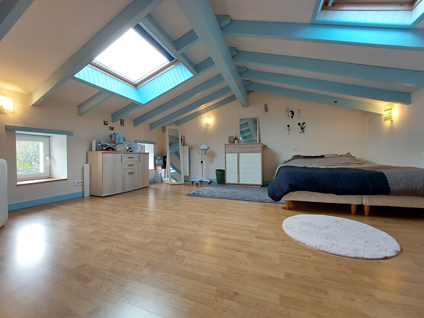 Comprenant : entrée, pièce de vie de 60 m² : cuisine-séjour ouvert sur salon avec cheminée, 5 chambres dont 1 suite parentale, 2nd salle de bains avec douche et baignoire, bureau, terrasse, préau, cave ;