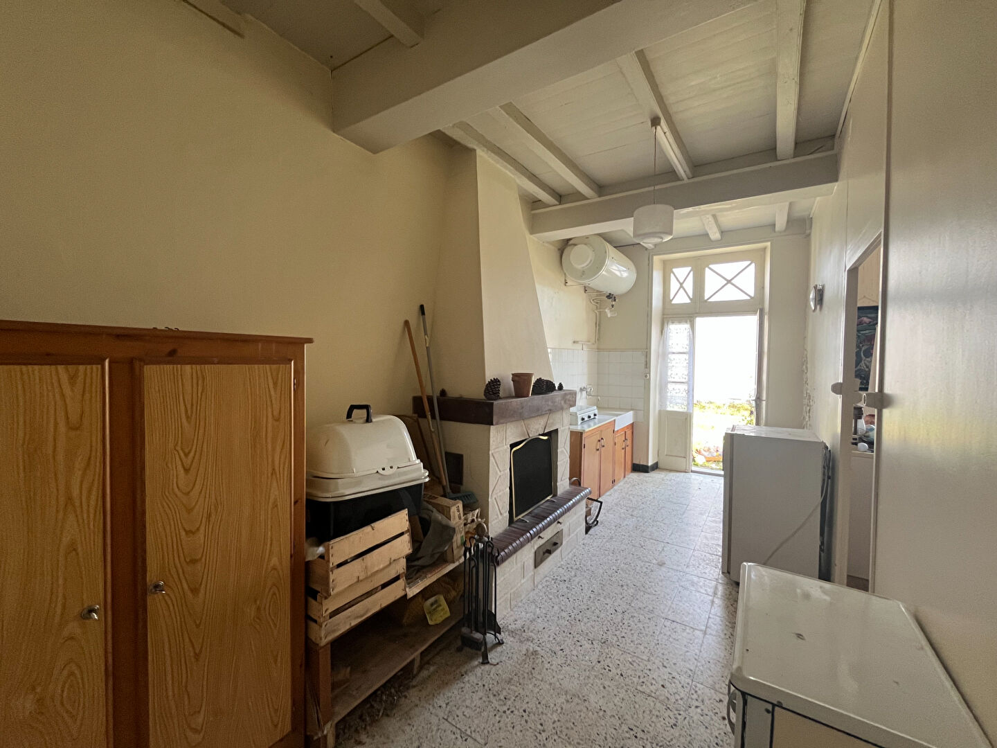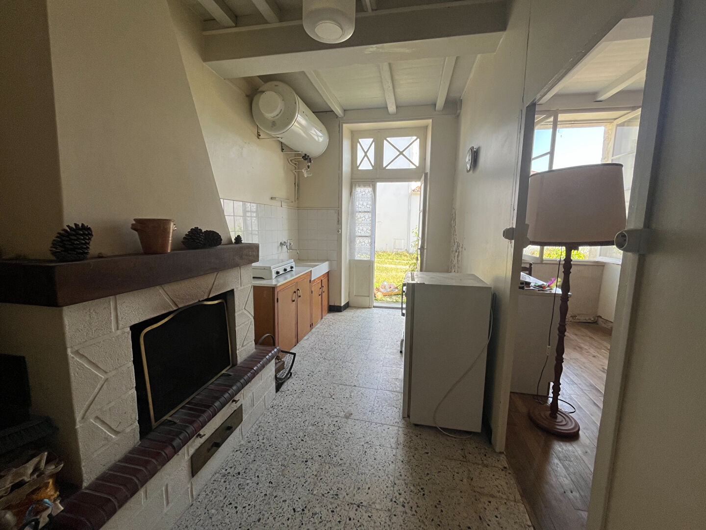 Elle offre 2 pièces en rez-de chaussée  pouvant être réunies pour avoir une grande pièce de vie chaleureuse avec sa cheminée.