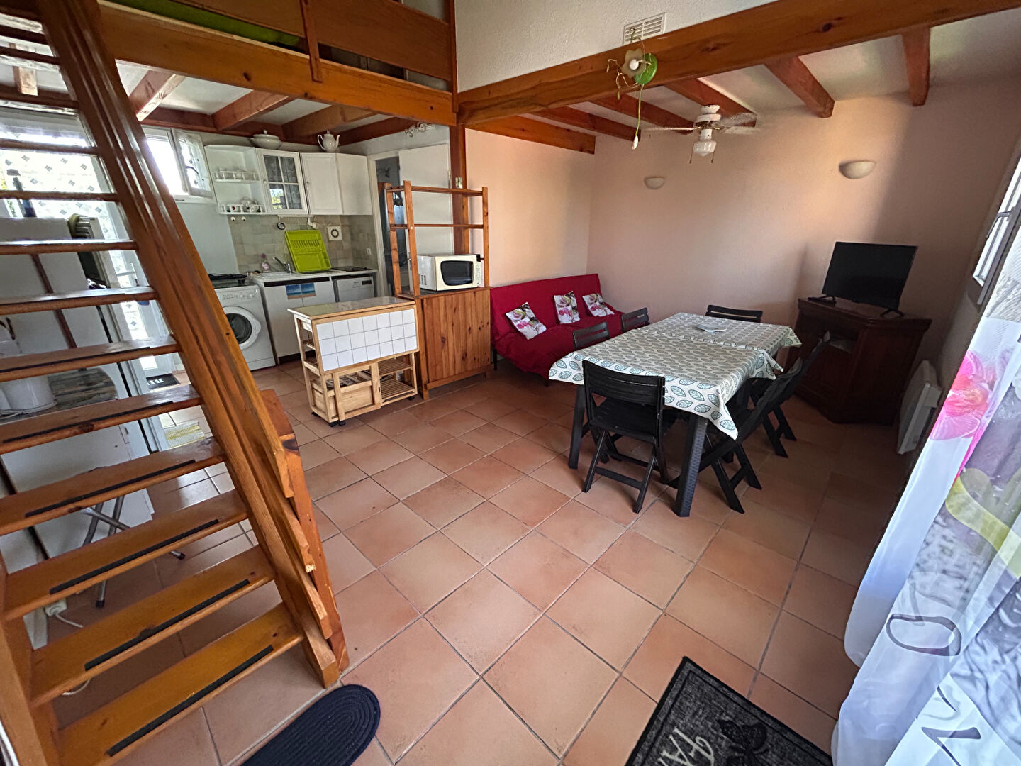 Venez découvrir cette maisonnette dans une résidence avec piscine, au calme, composée au rez de chaussée une cuisine équipée, un séjour donnant sur une véranda, une salle d'eau et WC indépendant. A l'étage vous trouverez une mezzanine et une chambre avec placard.