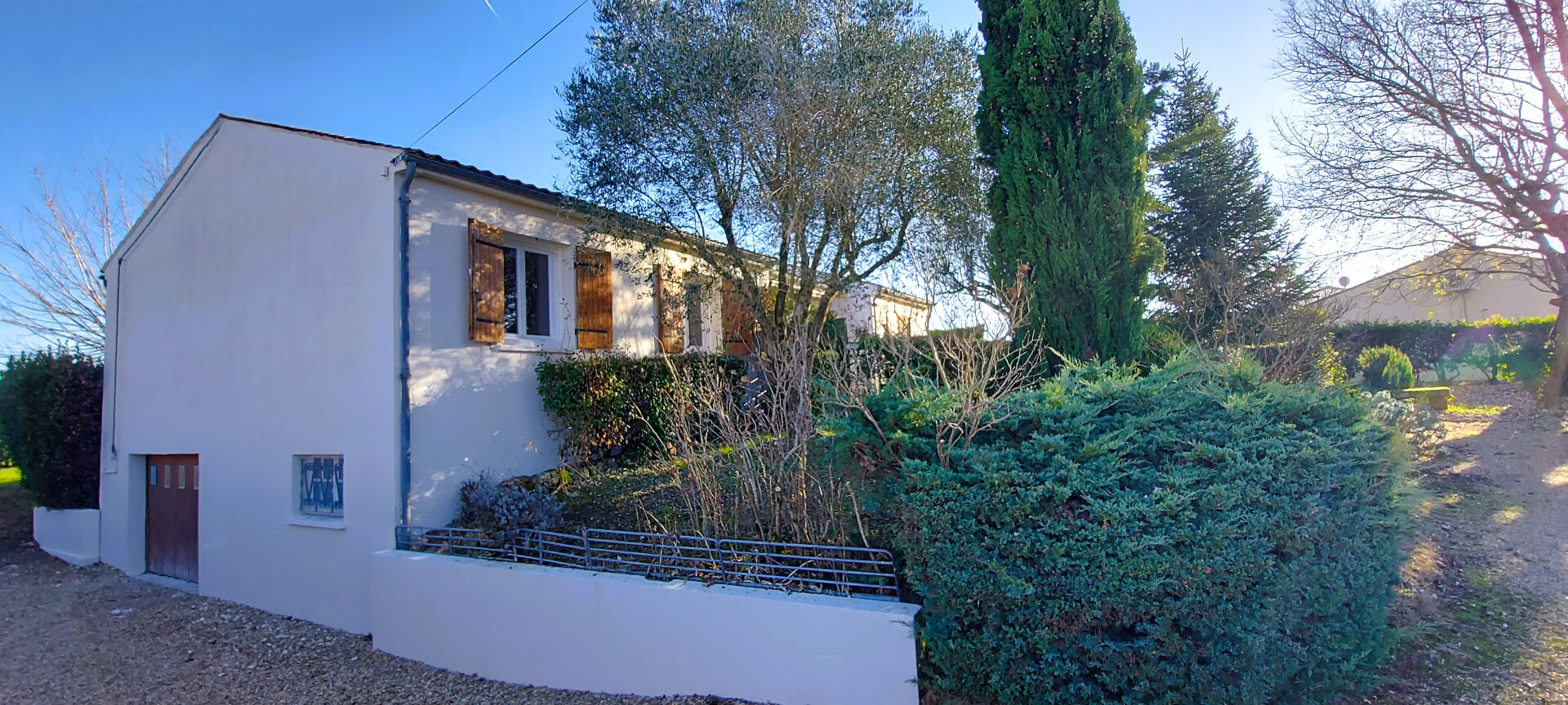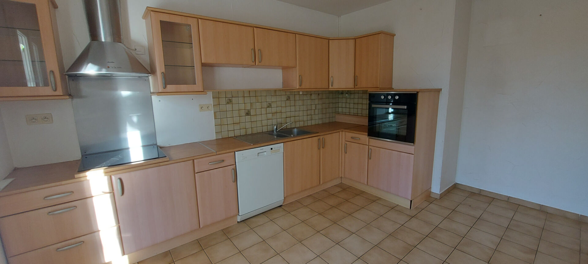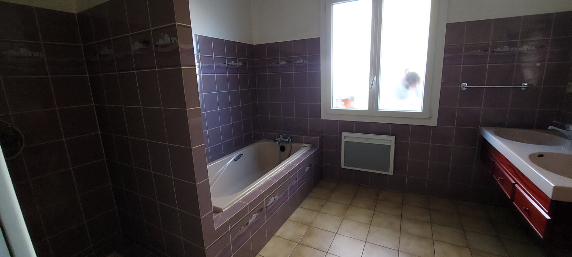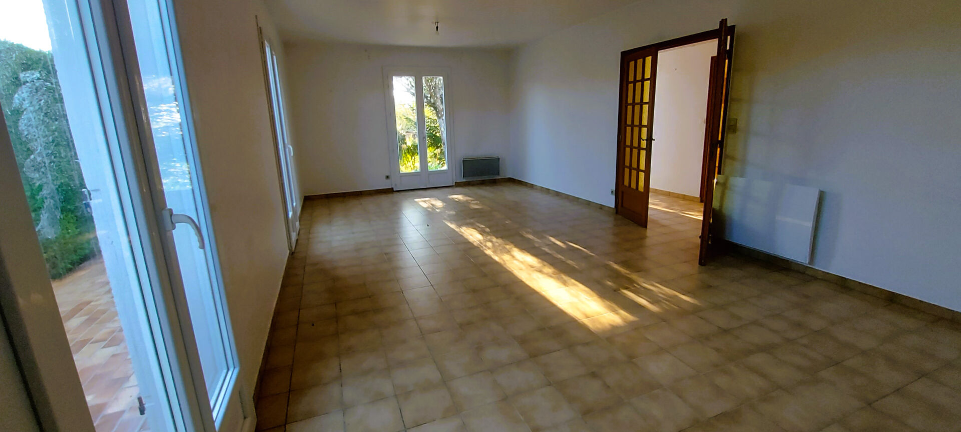 Maison de 1984, comprenant en rez-de-jardin une entrée qui desserre une cuisine indépendante, un vaste salon/séjour lumineux, un dégagement avec placards vous conduit vers le coté nuit avec 3 grandes chambres, salle de bain avec douche et WC.