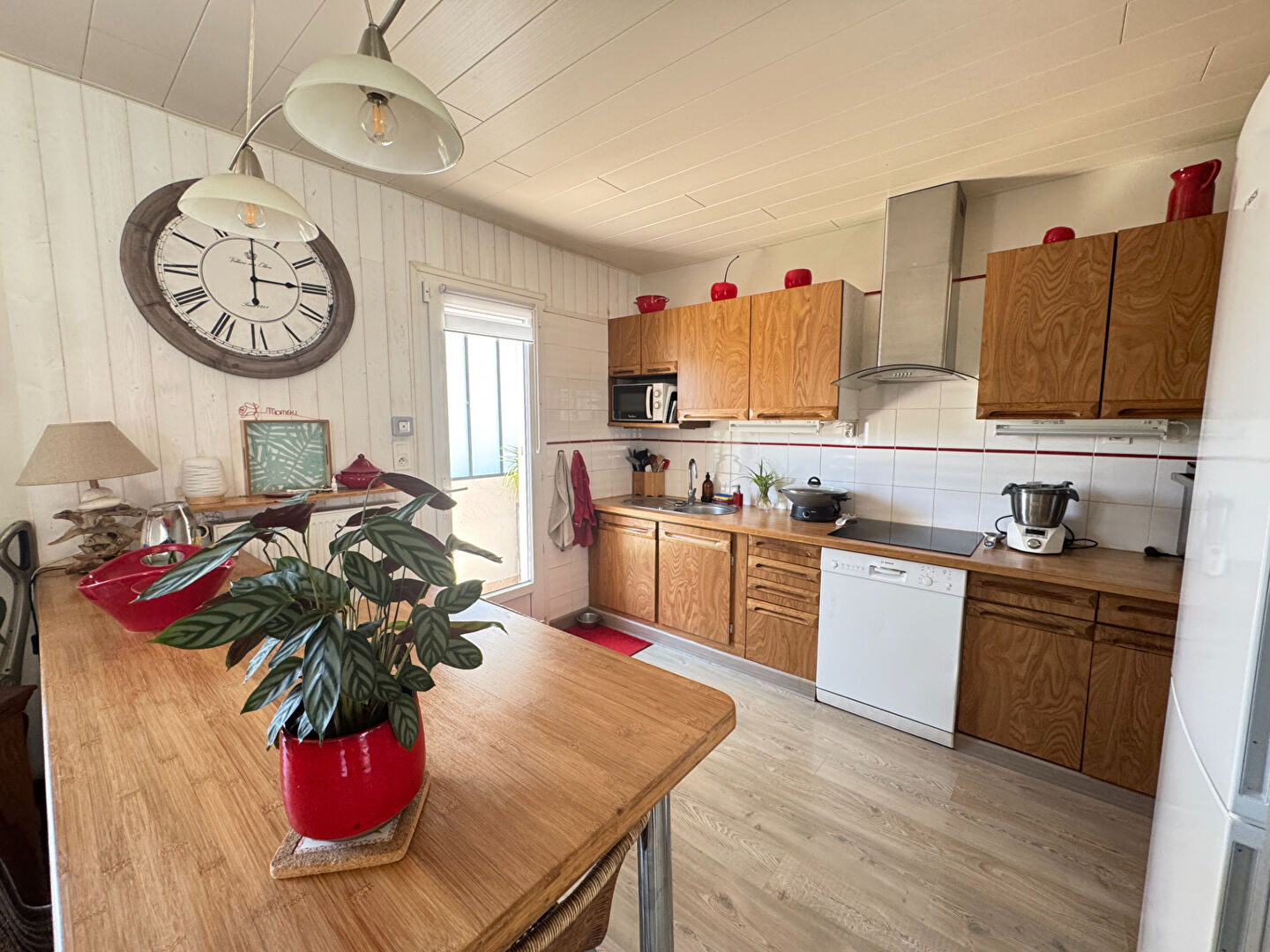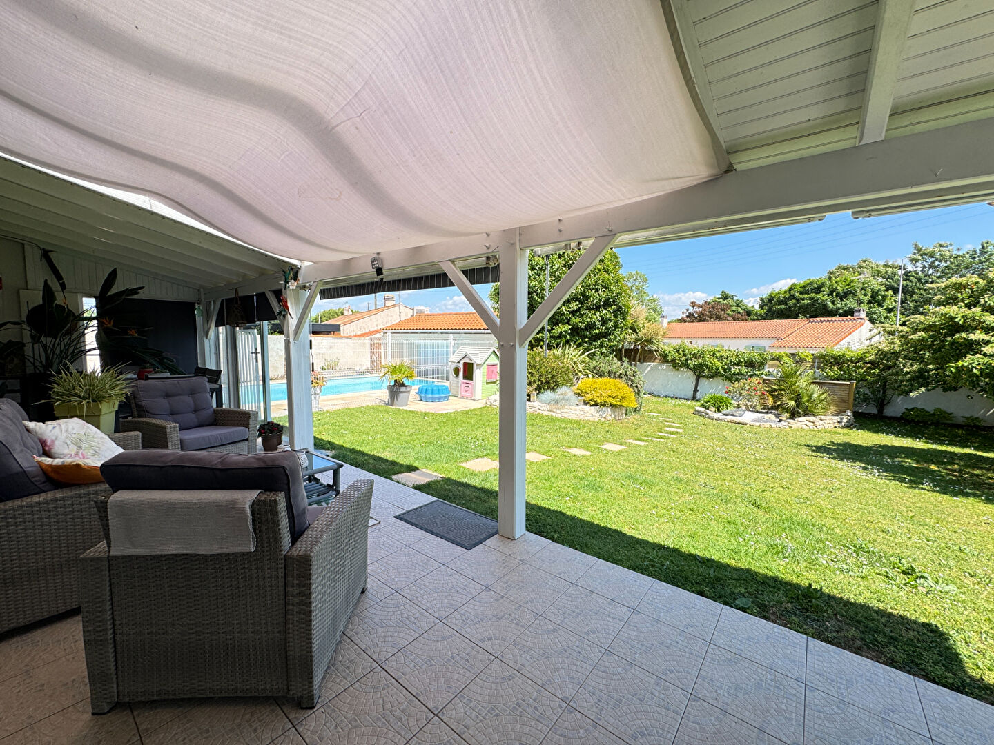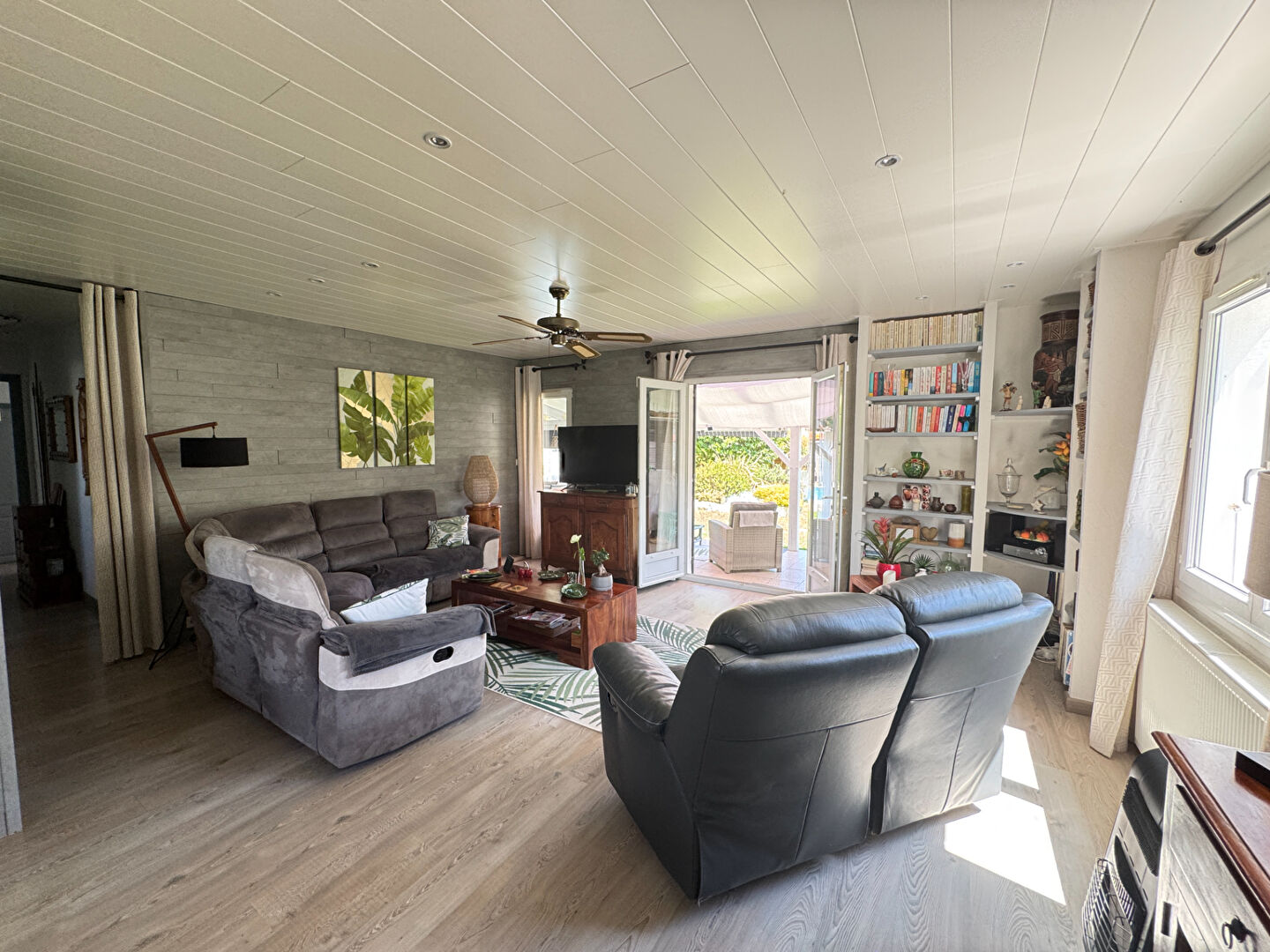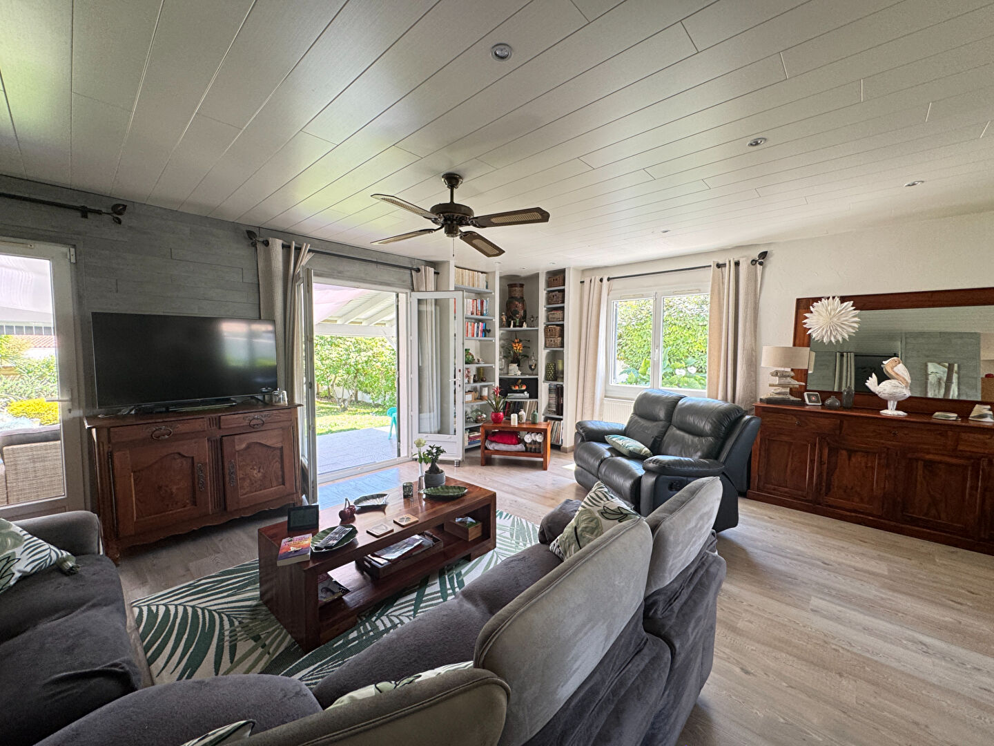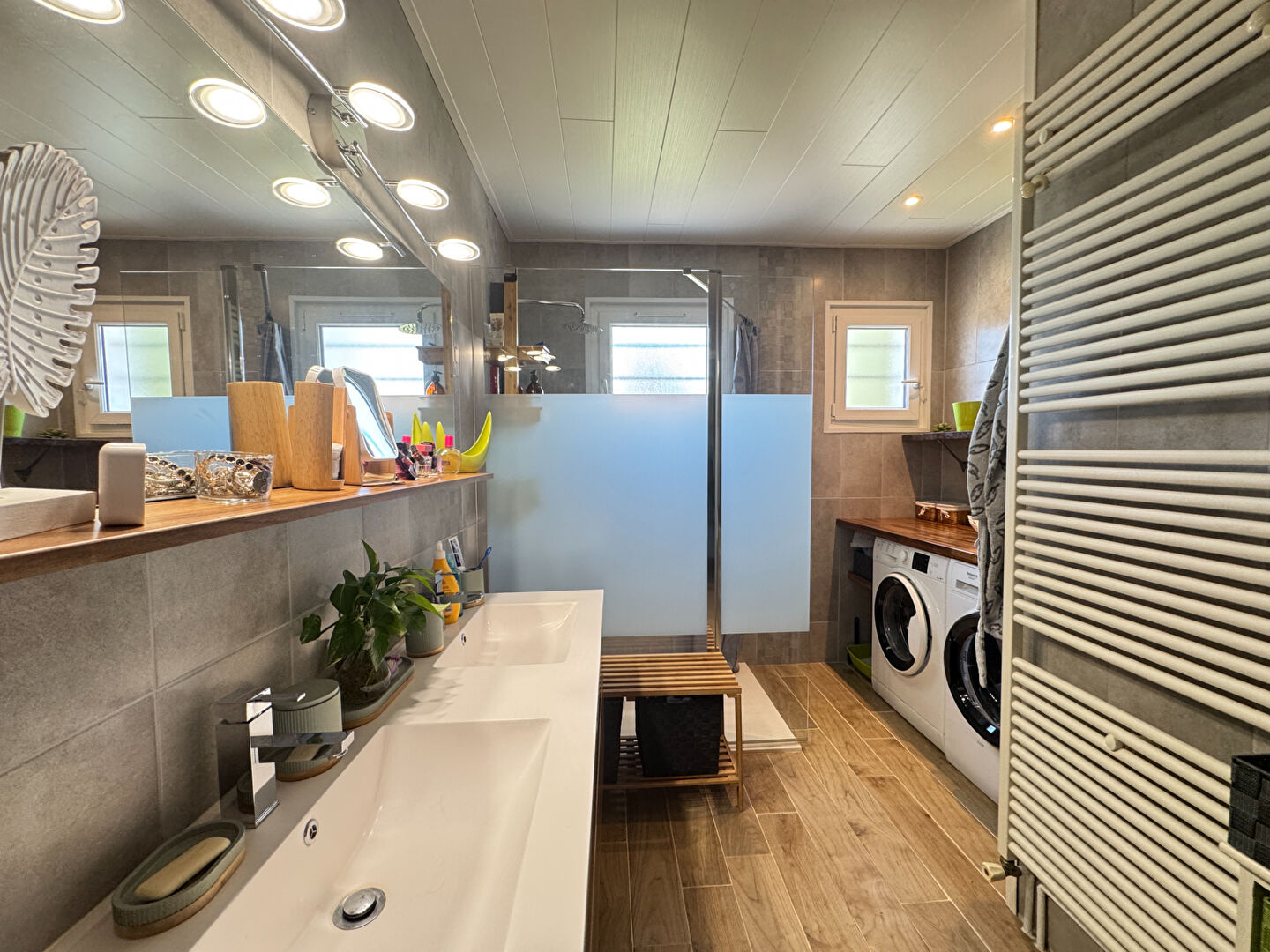 Elle se compose d'une cuisine aménagée et équipée ouverte sur une spacieuse pièce de vie donnant sur une terrasse avec auvent et jardin idéalement exposés, d'un dégagement desservant trois chambres, d'une salle d'eau avec WC, ainsi que d'un cellier.