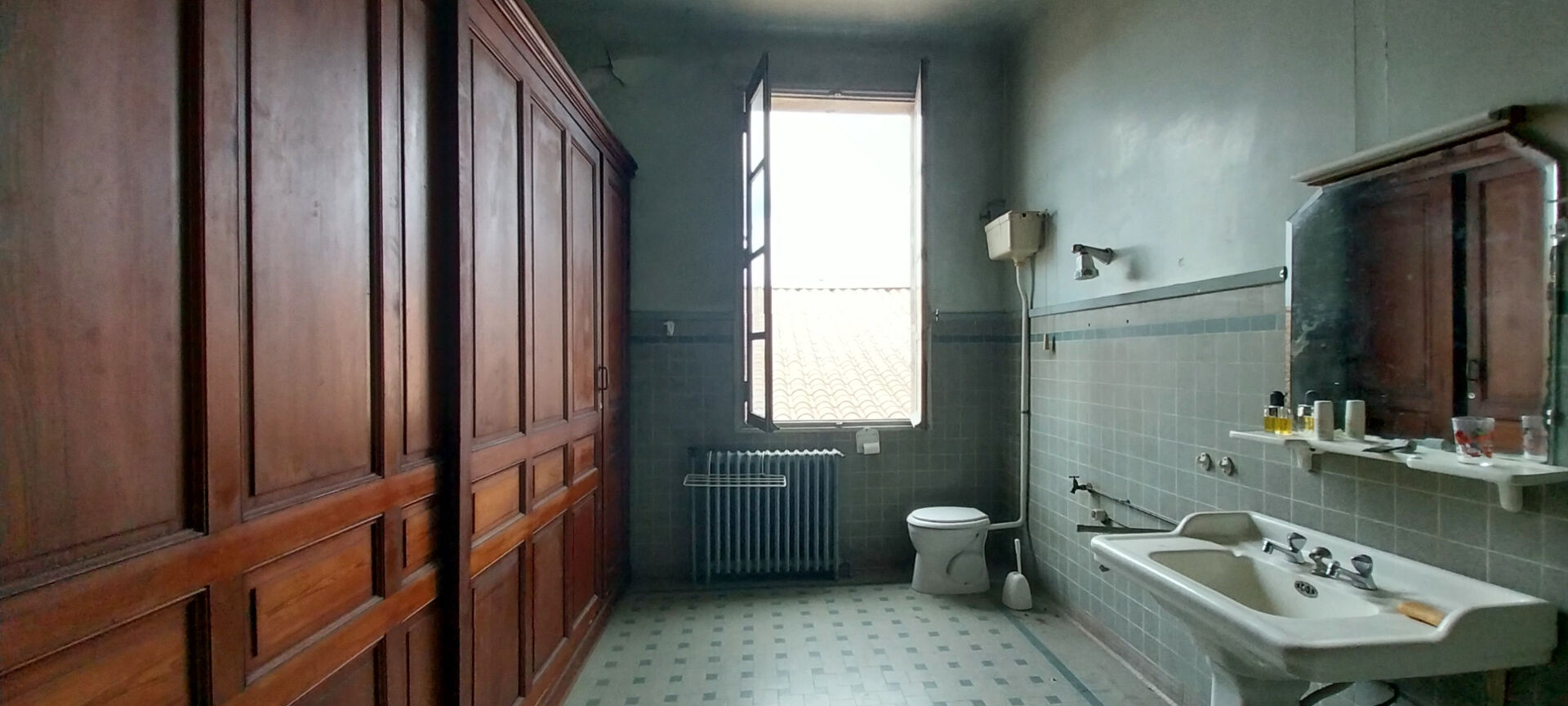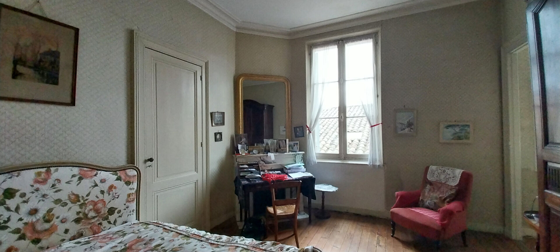 Tout y est conservé: volumes, planchers d'époque, cheminées, charpente de type bateau inversé, toiture en ardoise entretenue tout récemment.