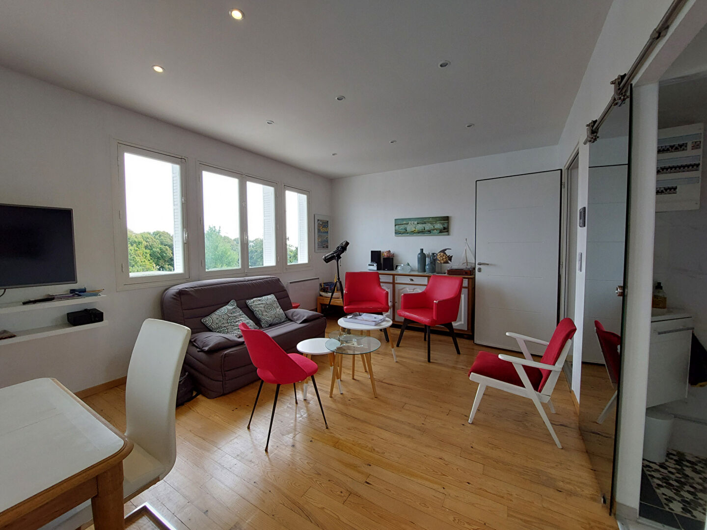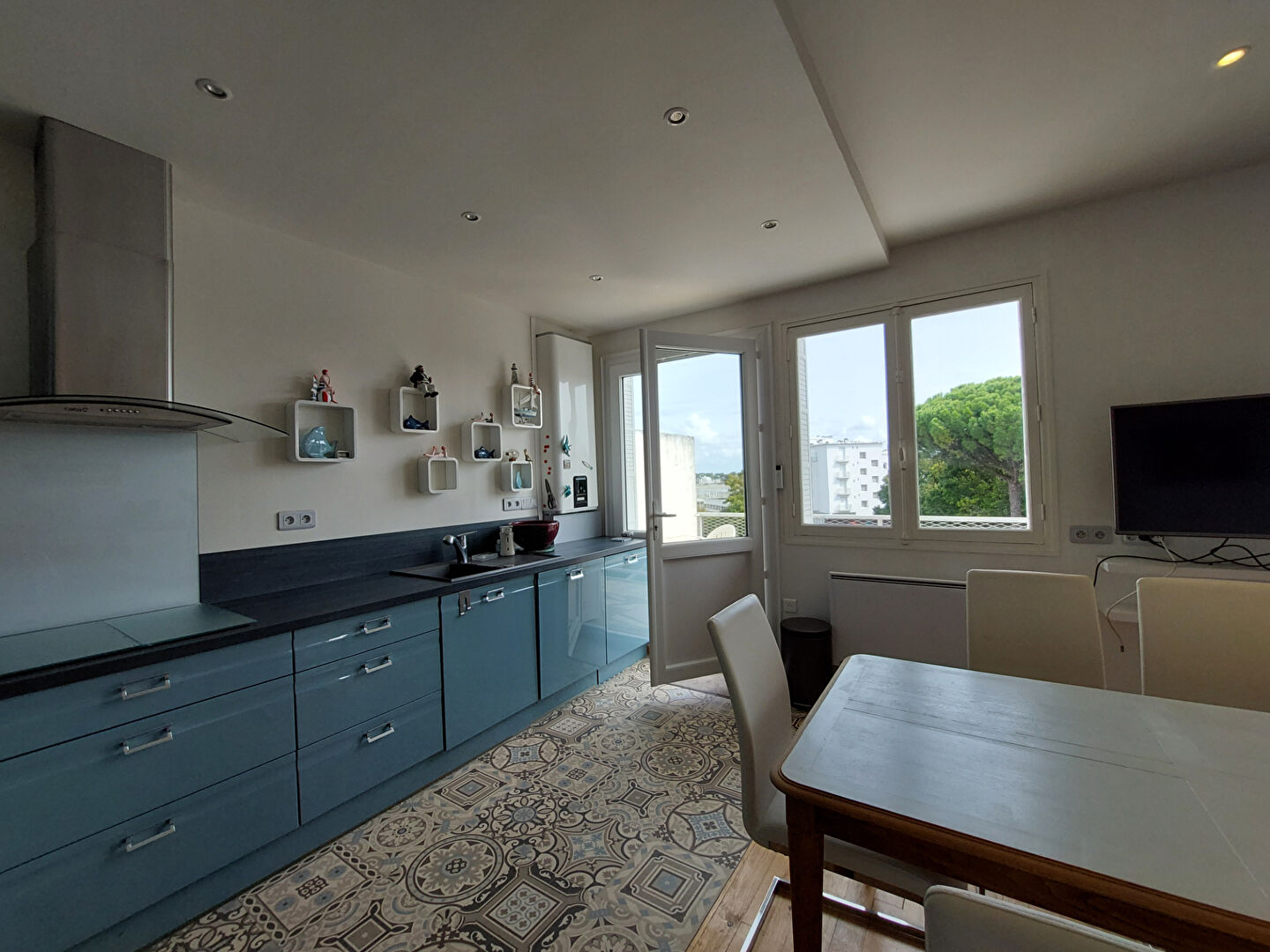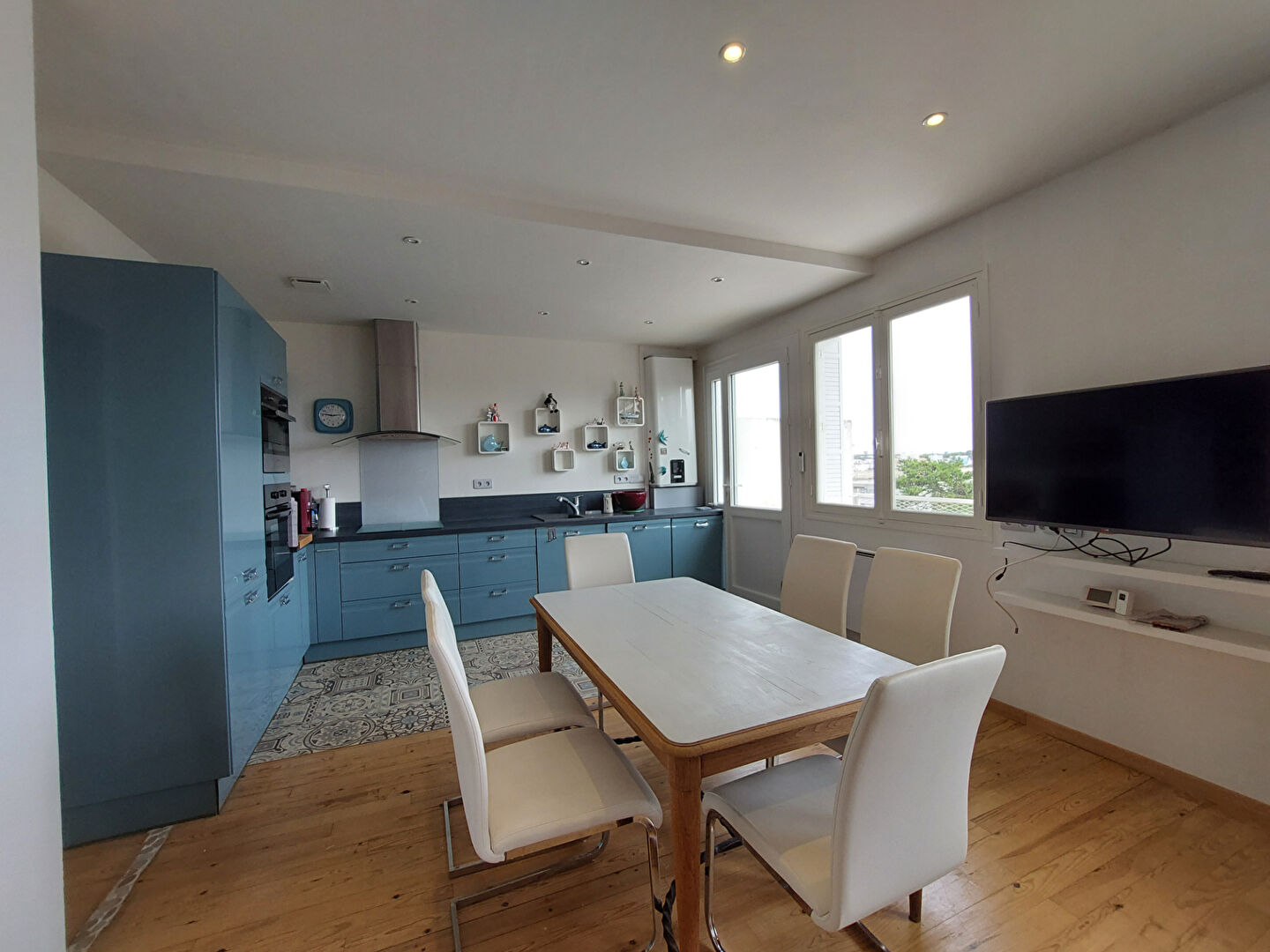 Belle vue panoramique avec bel aperçu mer pour cet appartement typique des années 1950 de 52,23 m² (loi carrez) très lumineux et entièrement rénové avec des prestations de qualité et situé à 100 m de la plage de foncillon et au dernier étage d'une petite co-propriété :