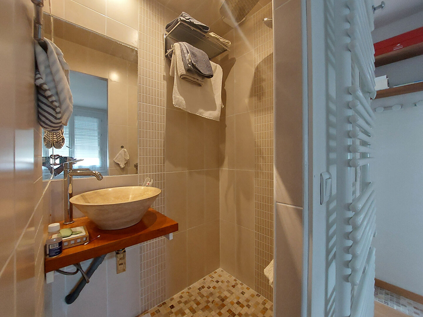 Un séjour spacieux avec cuisine ouverte aménagée et équipée ouvre sur une grande terrasse vue mer ; les deux chambres très bien optimisées bénéficient chacune de placards et de leur salle d'eau avec douche à l'italienne , wc et petit balcon ce qui donne un grand confort à l'appartement .