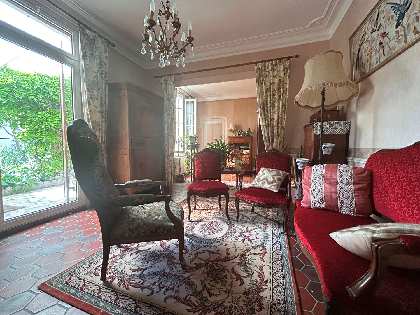 Maison en plein coeur de centre-ville se compose d'une maison principale offrant une entrée, deux salons-séjours, deux cuisines, deux grandes chambres et deux salles d'eau, permettant une belle modularité des espaces.