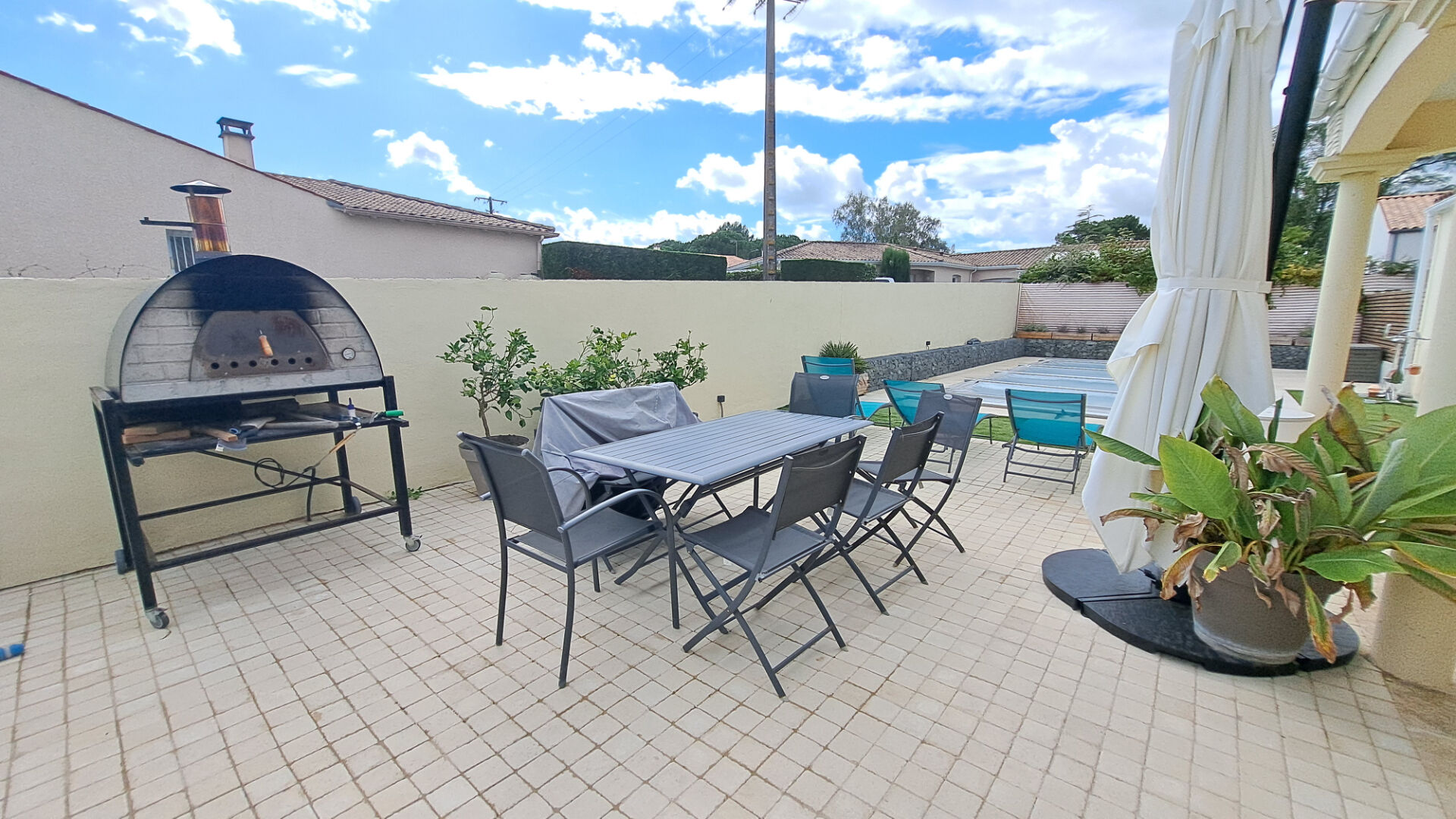Coté extérieur vous pourrez profitez d'une Piscine 8*4  avec filtration au au sel avec terrasse manégée dont une partie est couverte