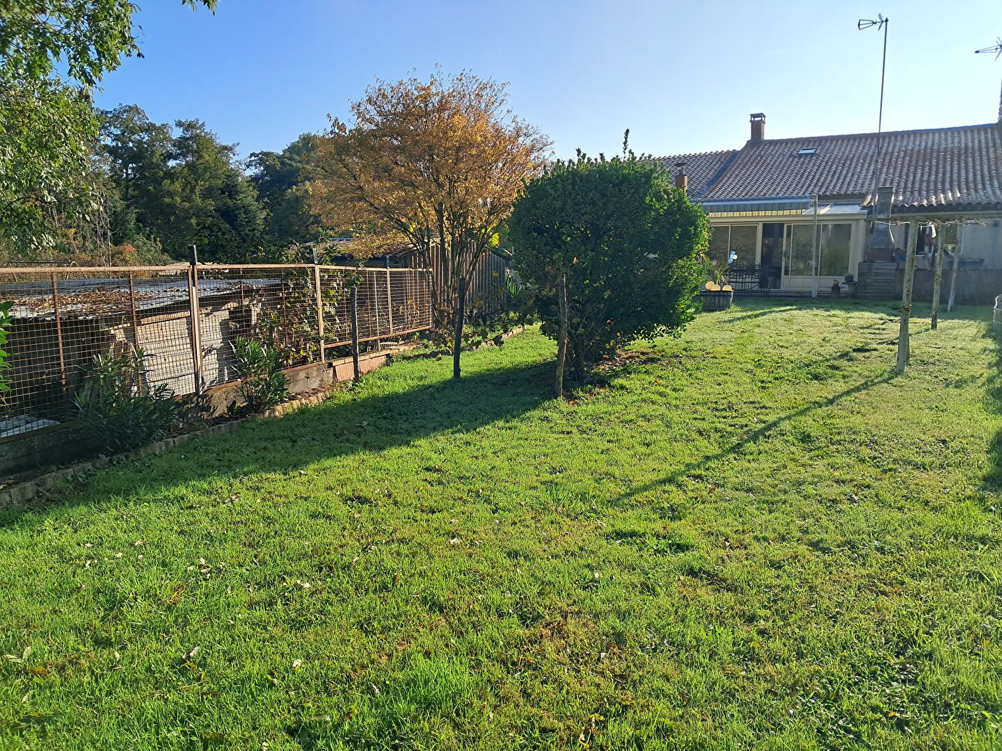 Elle se compose d'un salon- séjour avec poêle à bois, une cuisine aménagée et équipée, une salle à manger, une véranda donnant sur le terrain clos et arboré.
