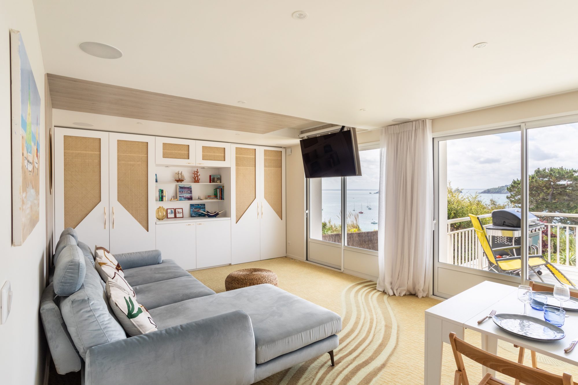 Composition : Suite parentale vue mer avec salle d'eau privative. Chambre d'amis et 2 espaces enfants. Grand salon baigné de lumière ouvert sur la mer et équipé high tech. Cuisine cosy aménagée équipée. Studio indépendant idéal pour la famille, les amis ou pour un revenu locatif