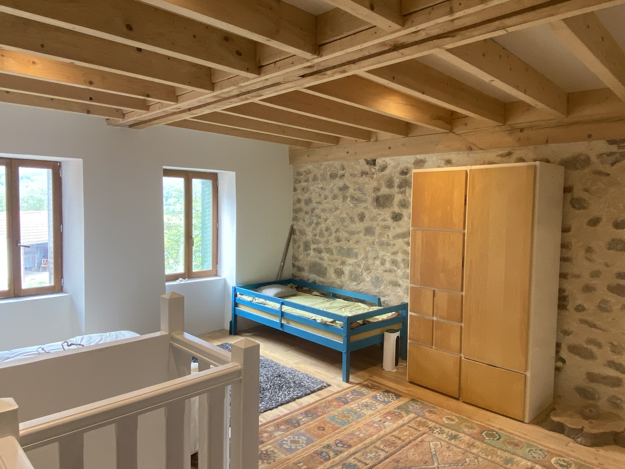 Entre VICHY et ROANNE - Dans un hameau proche d'ARFEUILLES - Longère atypique d'environ 157 m2 habitables, rénovée en grande partie comprenant au rez-de-chaussée : une cuisine ouverte sur une pièce à vivre lumineuse et spacieuse d'environ 54 m2 (cuisinière à bois), une chambre de 24.80 m2 avec une douche et un wc. A l'étage : un dégagement, une chambre de 12.52 m2, une chambre de 19 m2, une chambre de 24.70, une salle d'eau avec un wc denviron 12 m2. Un atelier attenant de 60 m2, un garage de 60 m2 accédant à une cave. Un hangar non attenant de 47 m2. Orientation : Nord / Sud. Un terrain dans un cadre de verdure d'environ 1000 m2.Assainissement non collectif non normalisé. Prévoir de moderniser le système de chauffage (conseil de l'audit énergétique :Pompe à Chaleur Air / Air) + complément d'isolation (huisseries). Votre conseiller ACCESS PRO Michel Dégoulange au 06.58.89.02.03 et michel.degoulange@accesspro.fr. Access Pro 20 rue Lucas, 03200 Vichy04.70.31.14.14