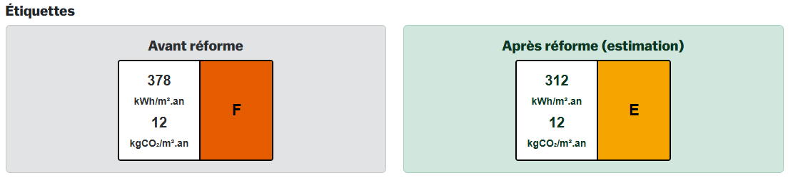 DPE F indice 378 GES F indice 12. NOUVELLE REGLEMENTATION EN JANVIER 2026. Travaux pouvant faire remonter la note : isolation 3 de murs donnant sur cour. Travaux chiffré.