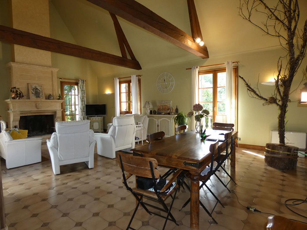 24160 CLERMONT D'EXCIDEUIL. Prix 364 000 euros Honoraires agence inclus ( dont 4%ttc à la charge de l'acquéreur, soit 350 000 euros hors agence). Dans un environnement verdoyant et très calme, sans route ni voisins, cette très belle maison de 1986, spacieuse, lumineuse, avec ses 200m² habitables, comprenant en rdc: une grande entrée, un salon séjour de 50m², une cuisine équipée avec une cheminée insert 12,50m², 2 chambres (12,20 / 14,75m²), une chambre parentale 23m² avec sa salle de bains, une seconde salle d'eau 4,20m². toilettes séparées. A l'étage: une mezzanine 20m² (coin détente ou lecture), 2 chambres (15/9m²), une salle d'eau + wc. En sous-sol: une grande cuisine aménagée 37m², réserve 15m², cave 12m². Un garage attenant, carrelé, pour 2 à 3 voitures, un endroit atelier 17m². Un second garage indépendant double de 37m². Une piscine au sel de 8x4. L'ensemble sur une terrain de 3200m².