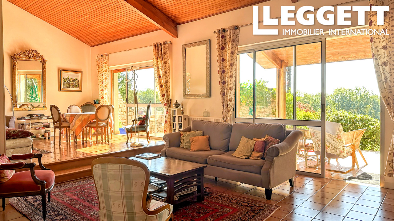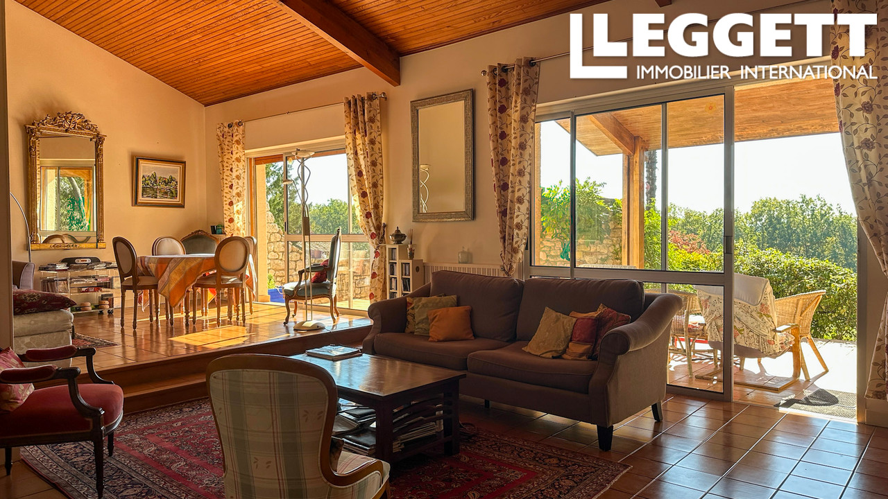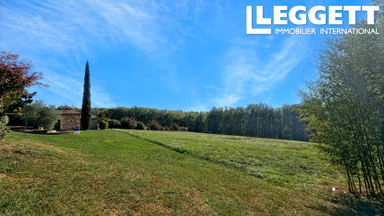 A40683ANW47 - Maison de campagne élégante avec piscine et terrain, située dans un hameau paisible du Lot-et-Garonne. Orientée plein sud, elle offre près d'1 hectare de terrain en pente douce avec vue dégagée sur champs et bois, à quelques minutes des commerces de Montayral et Sainte-Vite.