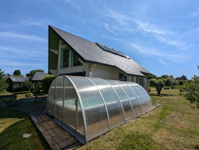 Dans un secteur calme et verdoyant, à deux pas du centre-ville d'Ussel, cette maison en madriers de 2005 allie charme, confort moderne et matériaux nobles. Son architecture sobre et chaleureuse s'ouvre sur un vaste séjour lumineux avec poêle à bois, prolongé par une cuisine équipée et une terrasse couverte avec cuisine d'été. L'espace nuit se compose de quatre chambres, dont une suite parentale avec salle d'eau et WC privatifs, ainsi qu'une salle de bains dotée d'une grande baignoire et de doubles vasques. Conçue avec une réelle exigence de qualité, la maison bénéficie d'un DPE exemplaire : pompe à chaleur Stiebel Eltron, VMC double flux avec puits canadien, isolation performante et récupérateur d'eau de pluie enterré de 2700 L alimentant les sanitaires et points d'eau extérieurs. Les finitions intérieures reflètent un haut niveau de soin : parquets massifs en frêne, érable et teck, menuiseries de qualité, ambiance chaleureuse et naturelle. Le terrain de 3 700 m², arboré et sans vis-à-vis, accueille un carport 3 voitures, un garage avec grenier, une cave à vin, des dépendances, ainsi qu'un spa de nage 4 m × 2 m. Une propriété rare sur le marché ussellois, où confort, écologie et élégance se conjuguent harmonieusement.