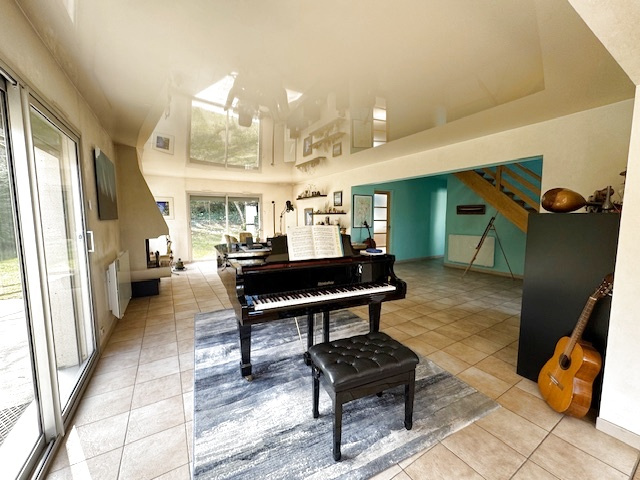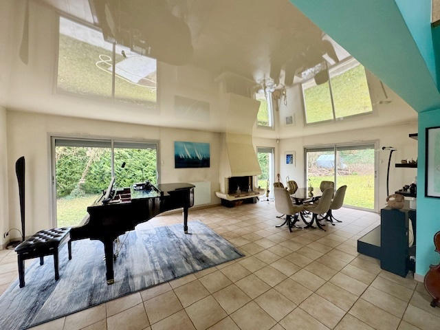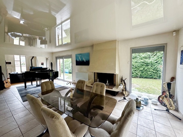 L'AGENCE DE VILLENNES vous propose une belle maison d'architecte de 1985 agrandie en 2002 idéalement située dans un quartier très résidentiel à 10 mn à pied du centre, des commerces, écoles et de la gare SNCF vers Saint Lazare futur RER E.Elle comprend une entrée, une vaste réception lumineuse de 60 m2 avec l'agrandissement en hauteur cathédrale, une cheminée et un poêle,volets roulants solaires programmables, grande cuisine dinatoire suivie d'un cellier et buanderie, une chambre ou bureau avec placard, salle d'eau et toilettes, placard.Un très bel escalier en bois mène à l'étage avec quatre chambres dont 2 grandes, toutes avec placards, salle de bains, toilettes. Le sous-sol est total avec un grand garage, atelier, cave à vin, labo photo et une pièce de rangement. Le terrain de 1078 m2 comprend une partie jardin, bordé par un beau mur en pierre et une partie boisé pour la joie des enfants. Accès rapide A13/A14, bus Express A14 vers la Défense, lycée International de St Germain en laye, école Notre Dame les Oiseaux à Verneuil sur Seine. VISITE VIRTUELLE EN LIGNE.