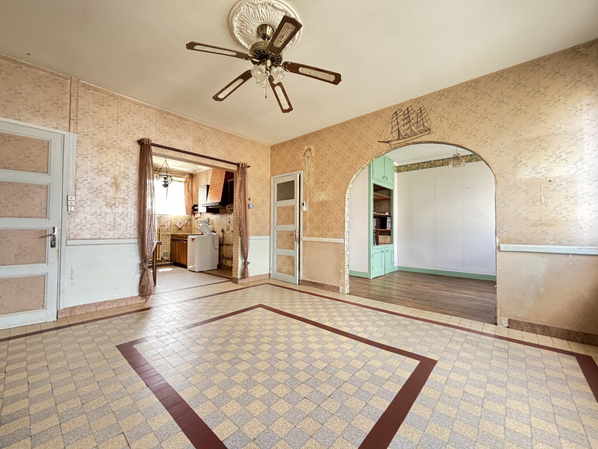 De plain pied, très lumineuse, elle se compose actuellement d'une entrée, d'une cuisine, d'un salon-séjour, de deux chambres, d'une salle d'eau, de WC séparés et d'une grande buanderie. Elle dispose d'un beau jardin sur une parcelle d'environ 450 m2.