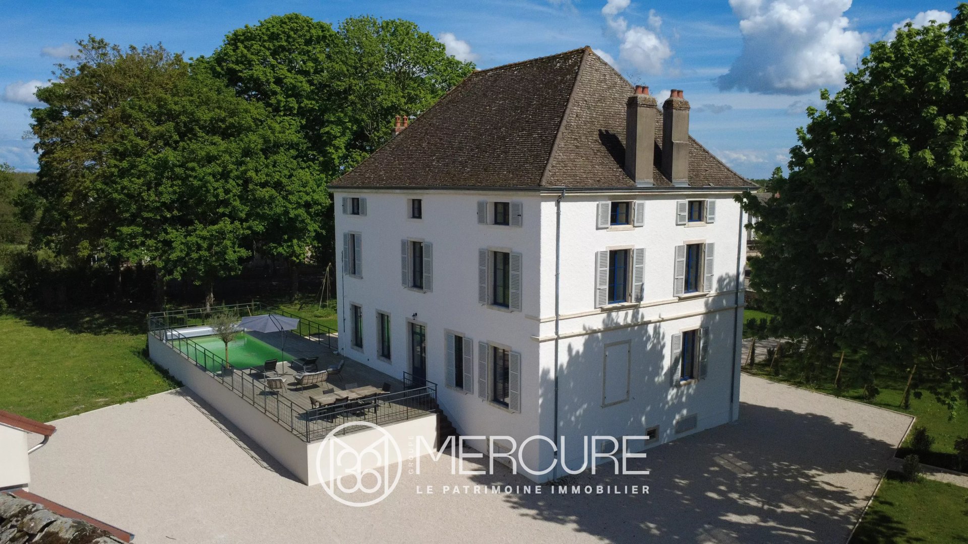 A quelques kilomètres de la ville de Chalon-sur-Saône et des vignobles de la Côte de Beaune, au cœur d’une commune avec commerces, vaste maison de maître entièrement refaite à neuf entre 2023 et octobre 2025 de 362 m² sur 3 niveaux comprenant un séjour avec cave à vins climatisée, une salle à manger, une cuisine américaine toute équipée, 7 chambres, 3 salles de bain/de douche et 3 toilettes. Possibilité d'installation d'une chambre avec douche au rez-de-chaussée et cheminées. DPE en A exceptionnel. Pompes à chaleur air/air, climatisation réversible sur les 3 niveaux, ballon thermodynamique pour la production d’eau chaude. Ascenseur possible. Vaste terrasse(120 m²) donnant sur une piscine chauffée de 8 x 4 m.