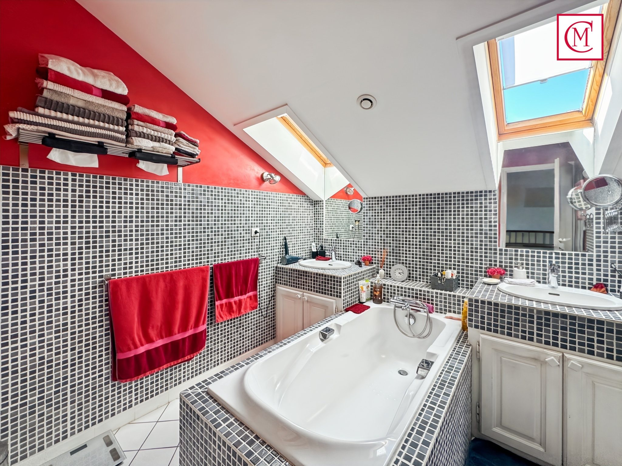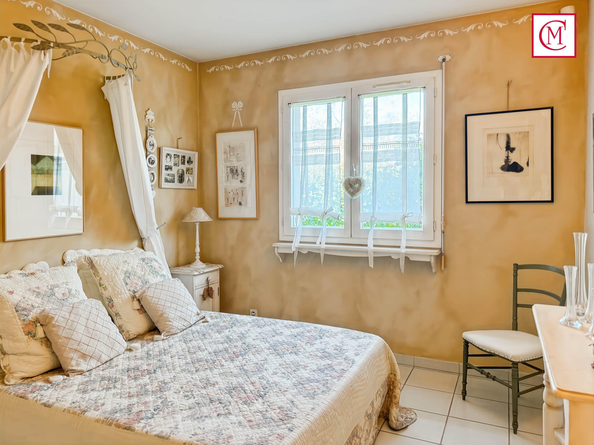 Édifiée sur un terrain clos et paysagé de 850m2, la maison développe 135m2 habitables répartis sur deux niveaux.Elle se compose d'un vaste séjour lumineux avec plafond cathédrale et accès direct au jardin, d'une cuisine ouverte, de quatre chambres, d'une salle de bains, d'une salle d'eau et de deux WC.