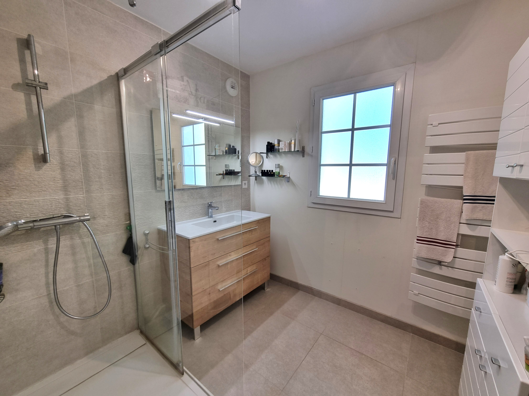 un palier pouvant servir de bureau, 3 chambres, une salle de bains et des WC indépendants.
