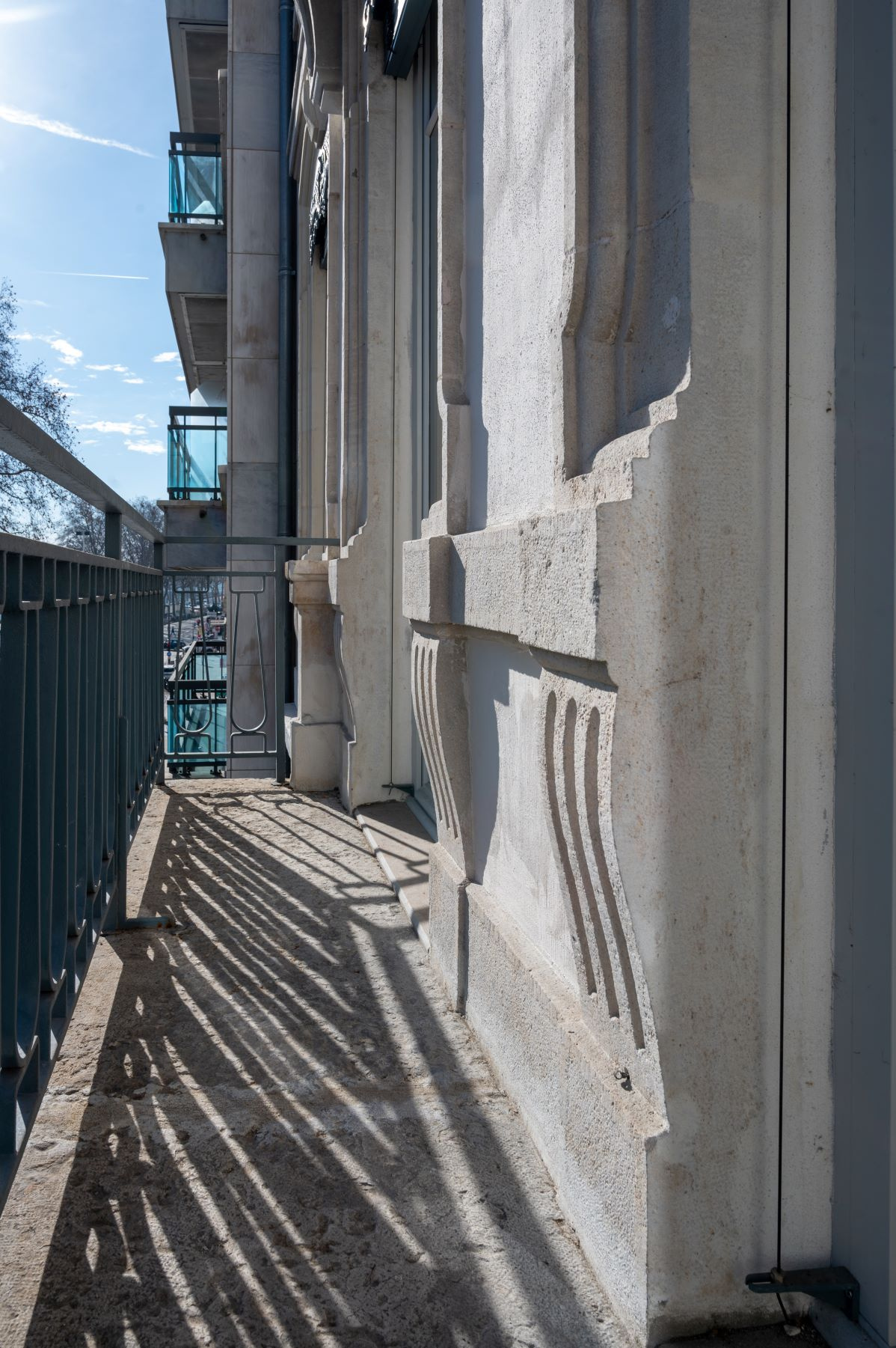Dans un superbe immeuble bourgeois datant de 1860 avec ascenseur, un appartement de 100 m2 ayant préservé tout le charme de l'ancien avec des prestations contemporaines et une vue exceptionnelle sur les quais du Rhône. Il se compose d'une entrée ouverte sur l'espace de réception en parquet, un salon et une cuisine équipée donnant sur un balcon filant exposé à l'Est, deux suites avec chacune sa salle d'eau contemporaine. Une buanderie. L'appartement est climatisé et a été entièrement rénové par un architecte. L'immeuble bénéficie d'une salle de sport et d'un local à vélos.