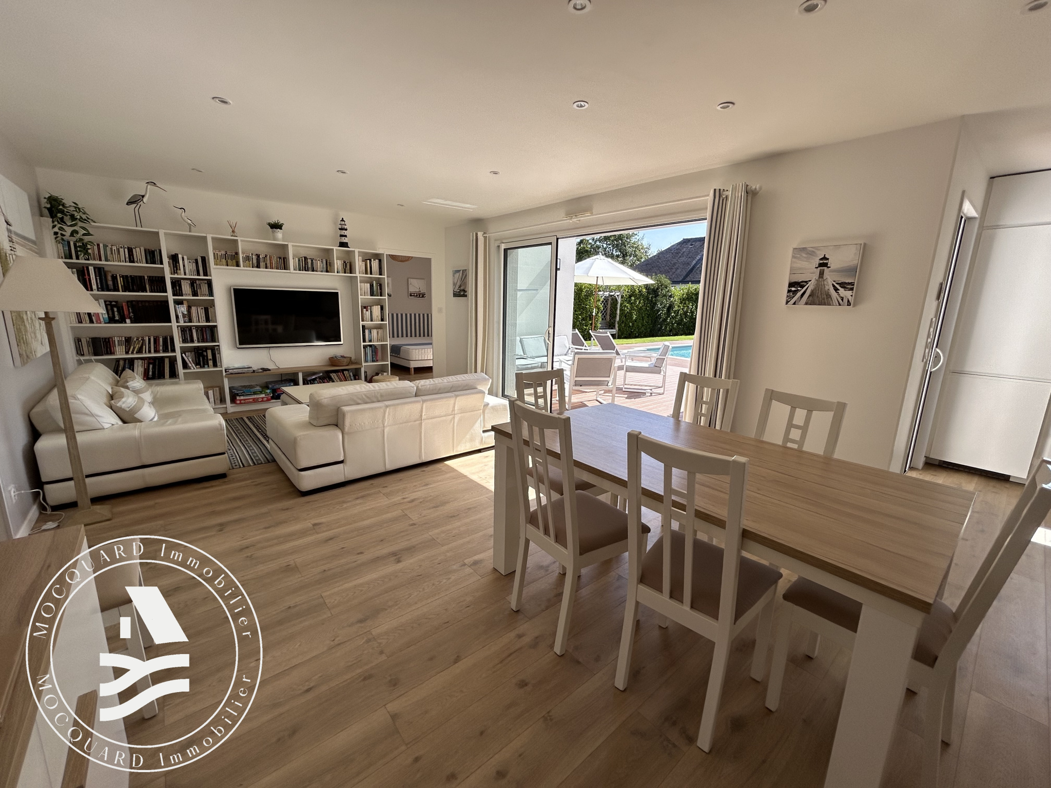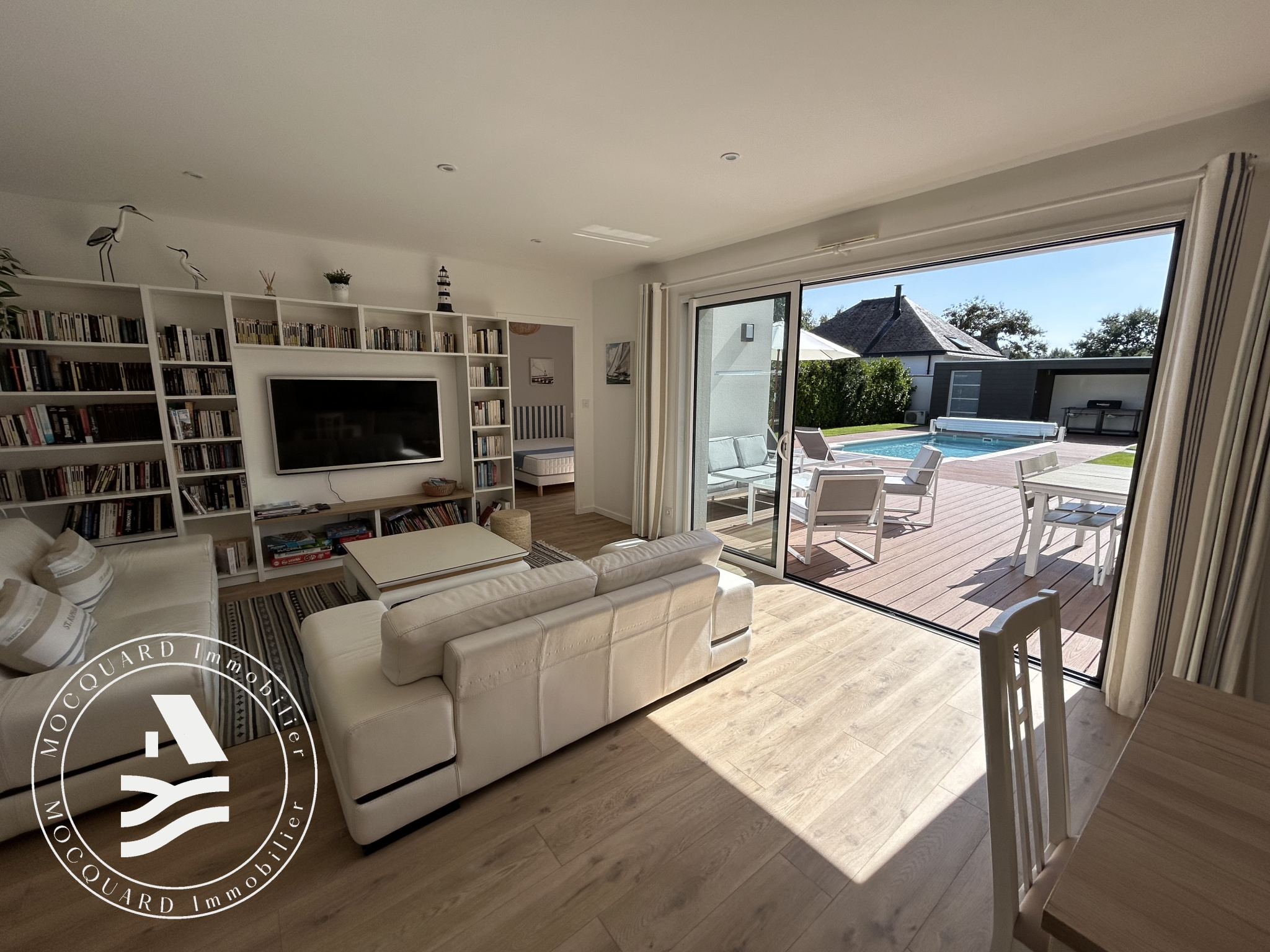À l'extérieur, l'art de vivre s'exprime pleinement : sur un terrain clos de 680 m2, une piscine s'accompagne de sa pool house, invitant à de précieux instants de convivialité et de détente. Un garage complète cet ensemble.