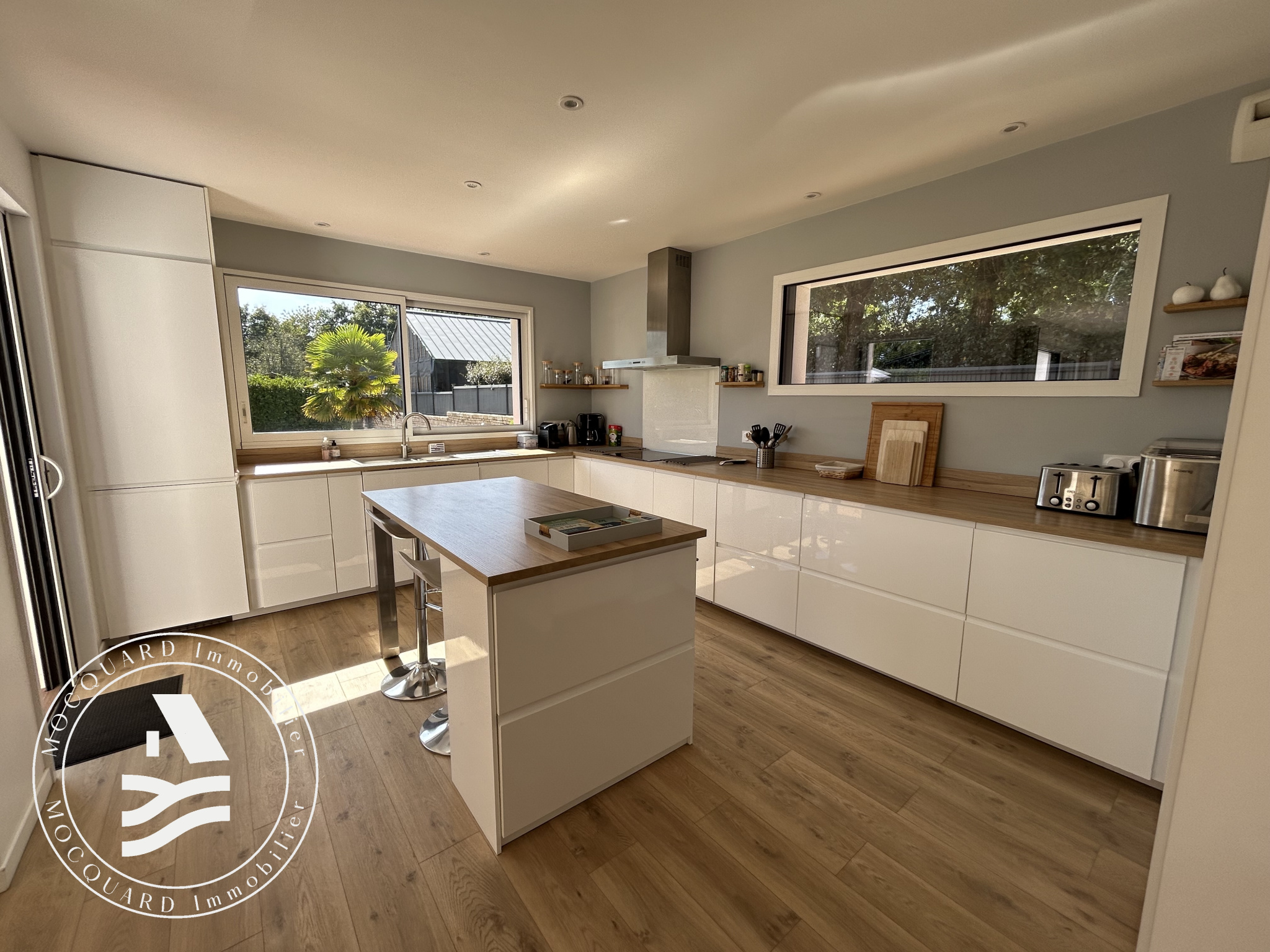 MOCQUARD IMMOBILIER vous présente en exclusivité, cette élégante maison contemporaine édifiée en 2019 située à seulement 800 mètres du centre-bourg de Crac'h, au calme d'une impasse. Elle se distingue par son intimité préservée et son environnement paisible, à l'abri de tout vis-à-vis.