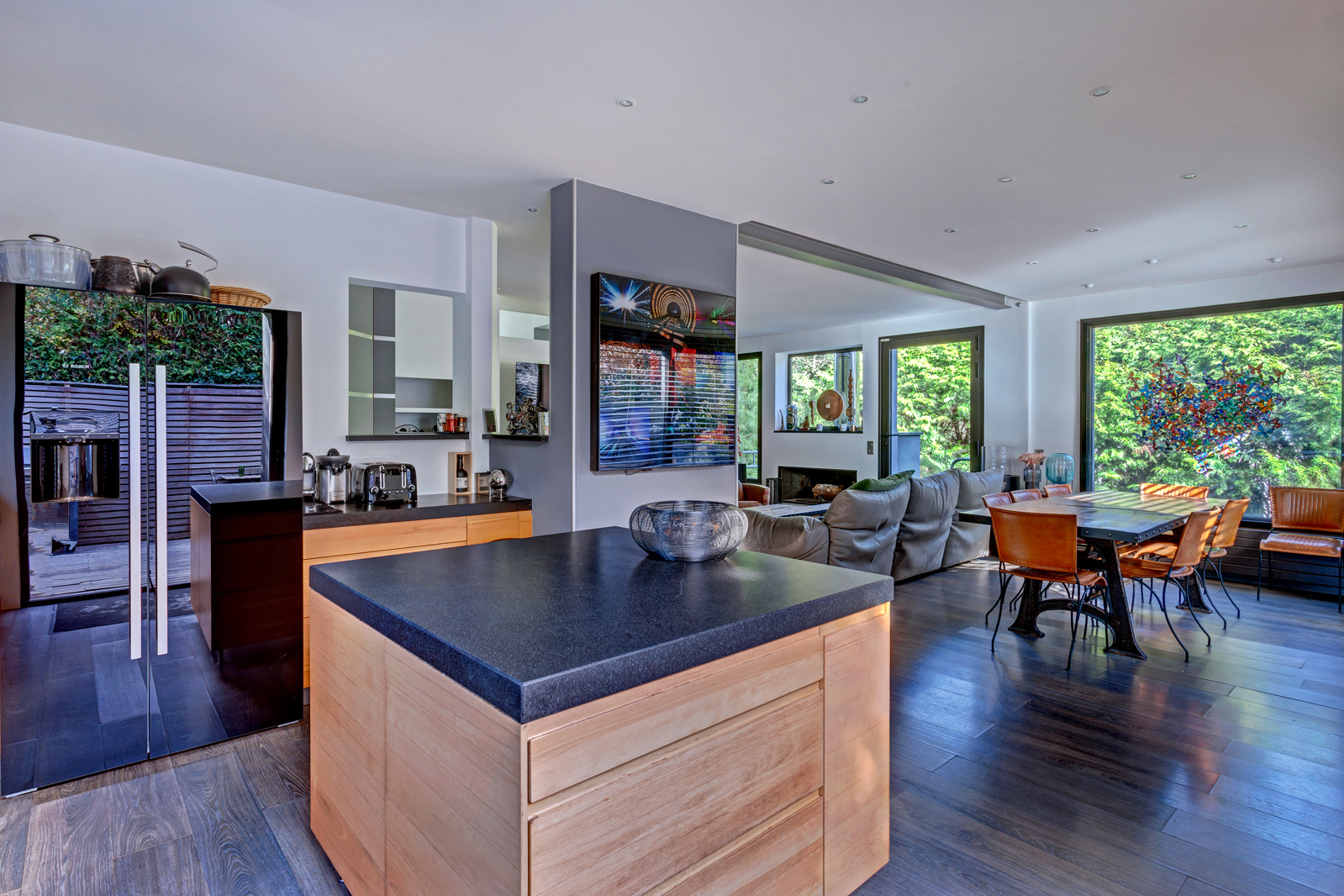 À l'extérieur, un jardin paysager sans vis-à-vis, dessiné par un paysagiste, et une terrasse en bois exotique (Cumaru).