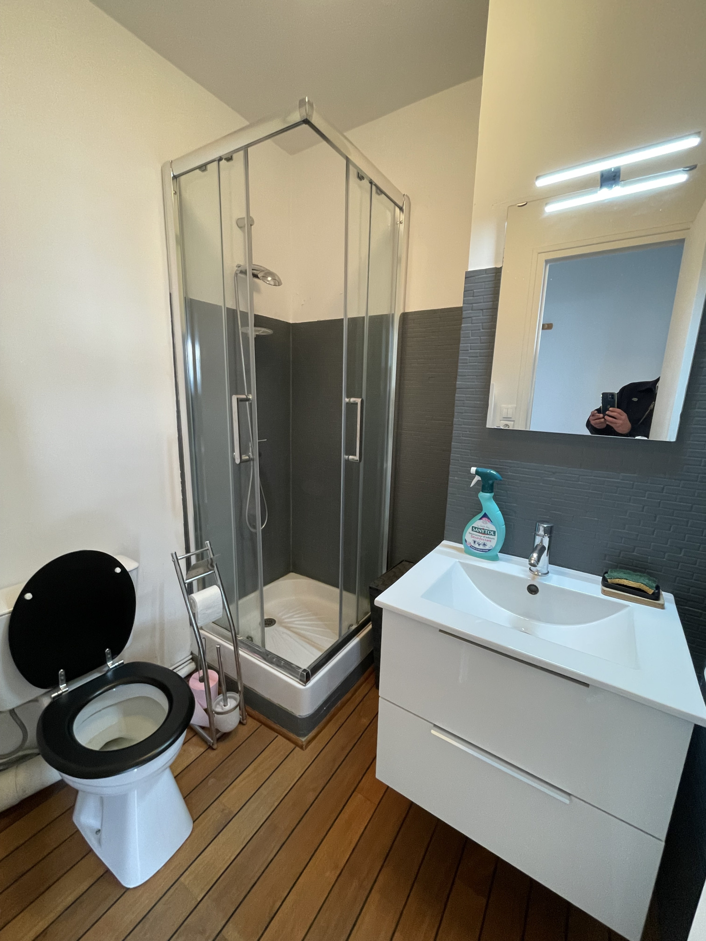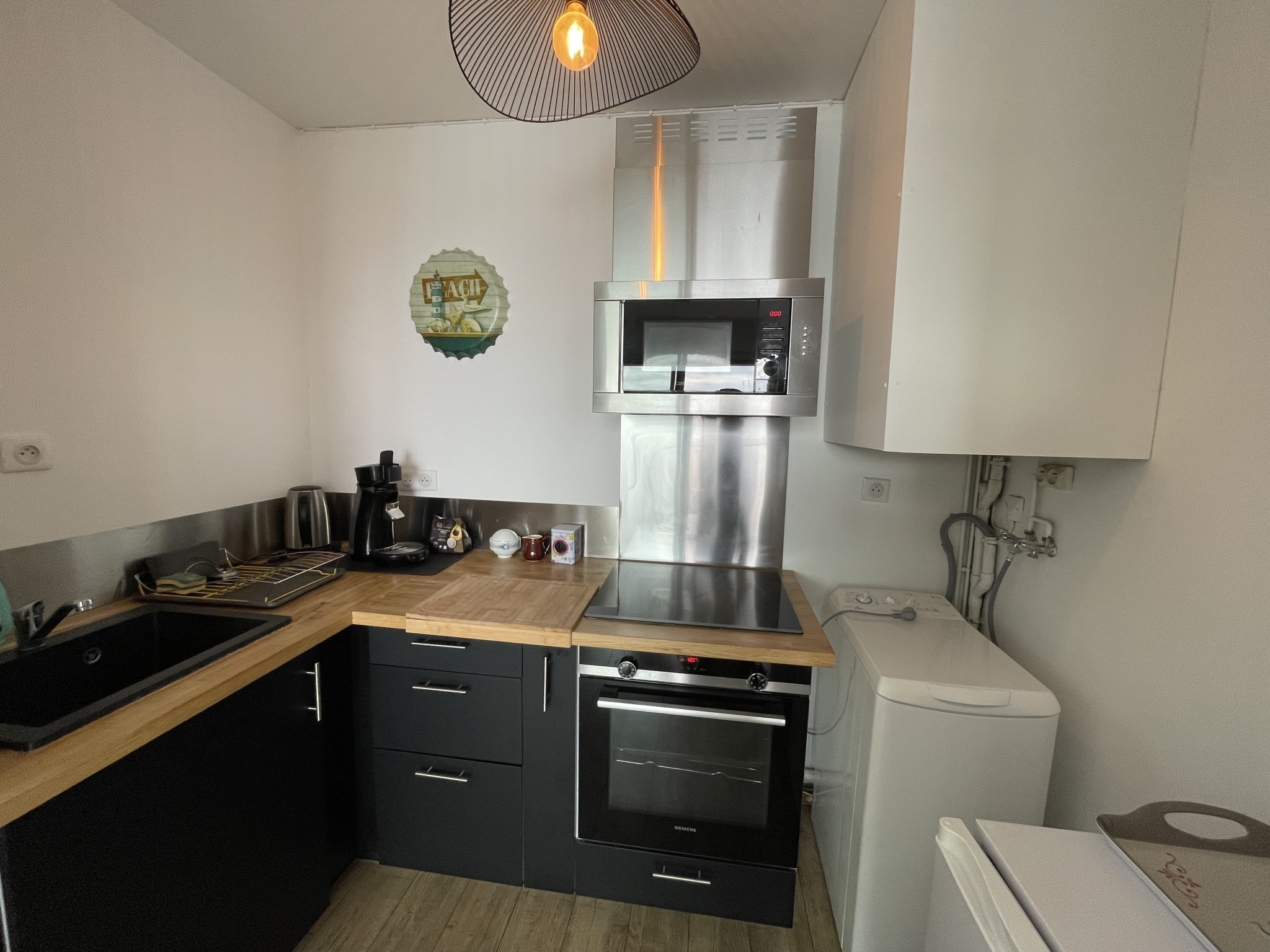 Entrée, pièce principale, cuisine ouverte équipée, salle d'eau avec water-closet.