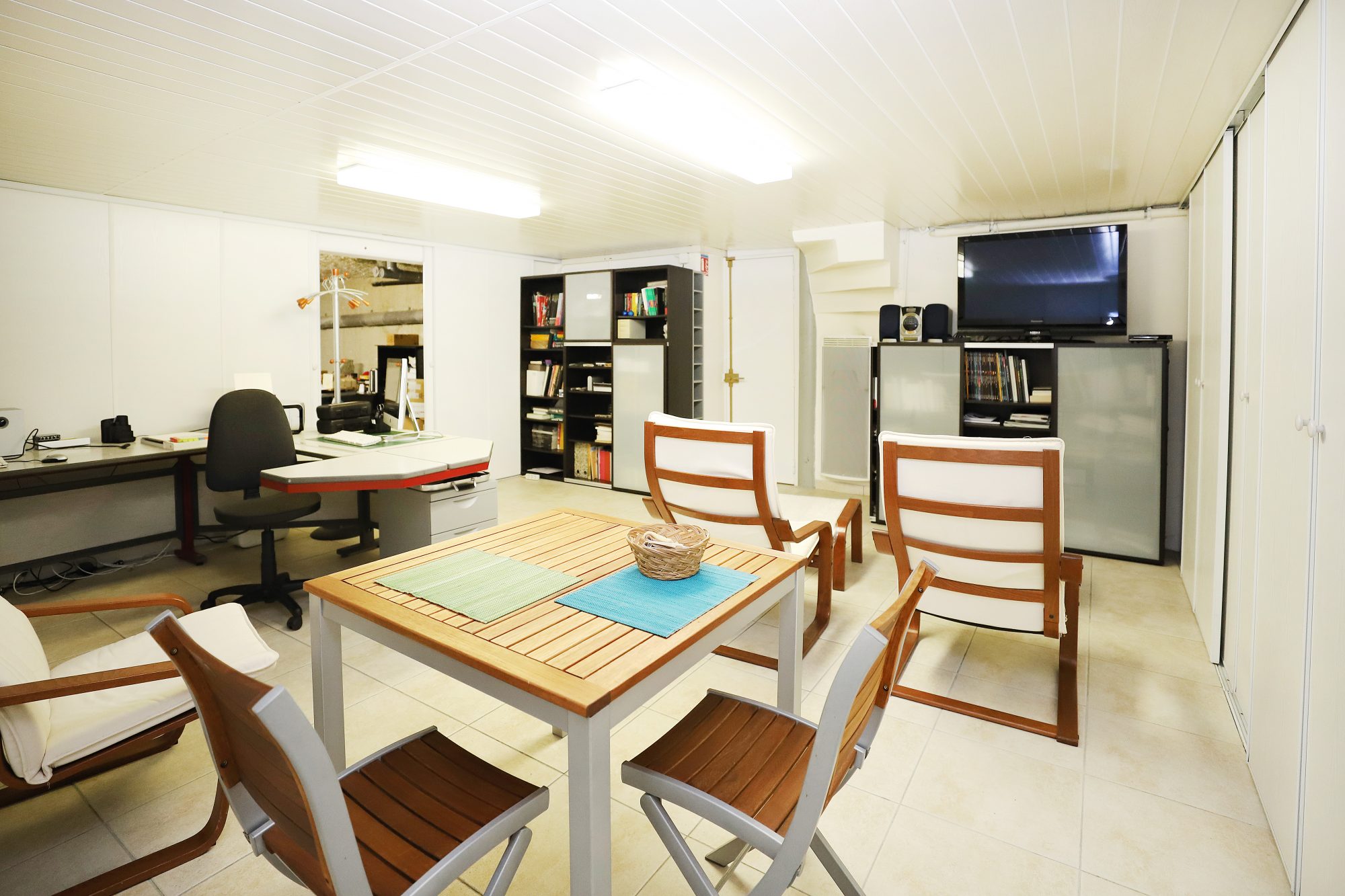Il se compose, en rez-de-chaussée de deux grandes pièces d'une surface totale de 84,01 m², avec wc et cuisine. En sous sol, d'une pièce de réception ou bureau de 39,27 m² ainsi que d'une réserve.