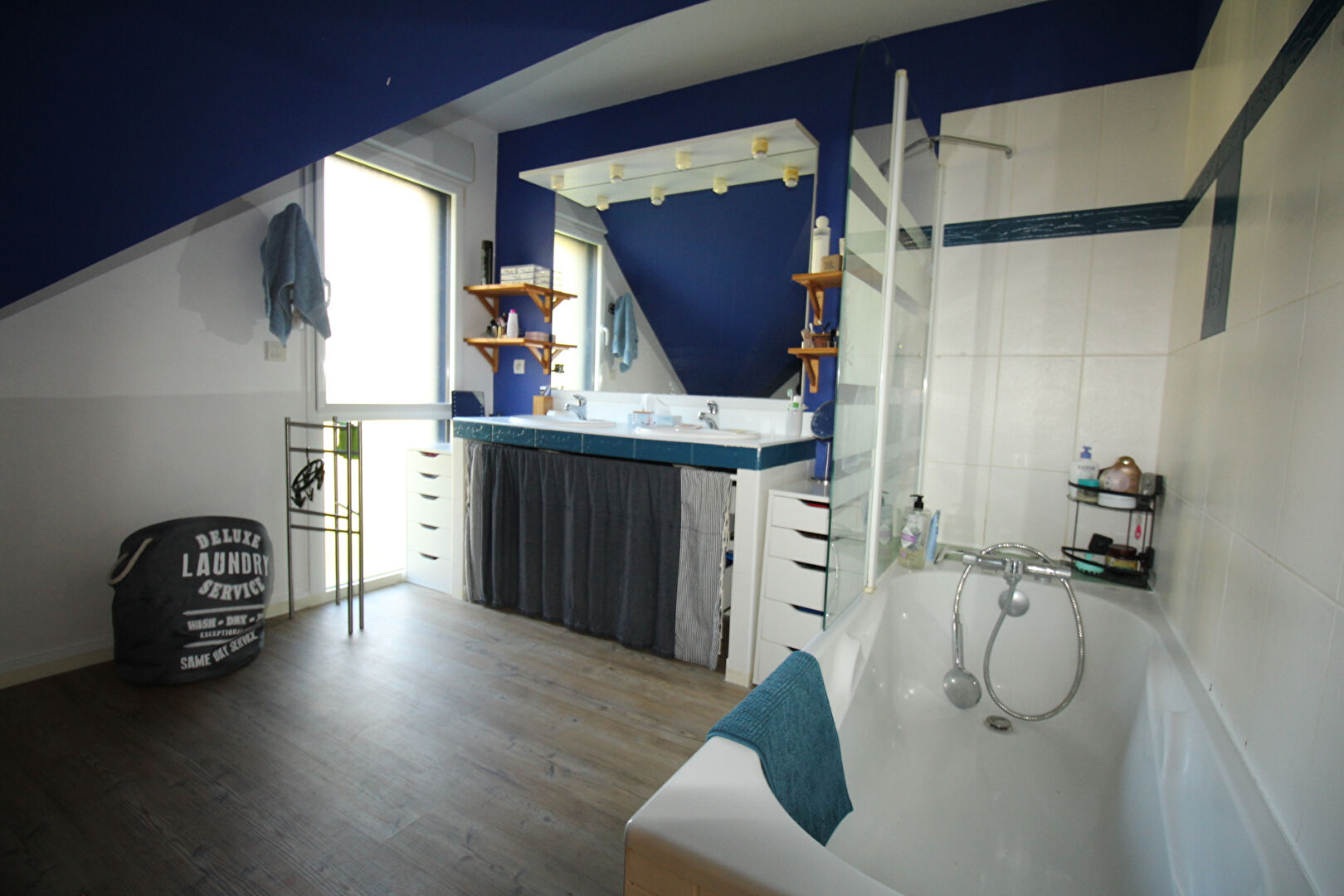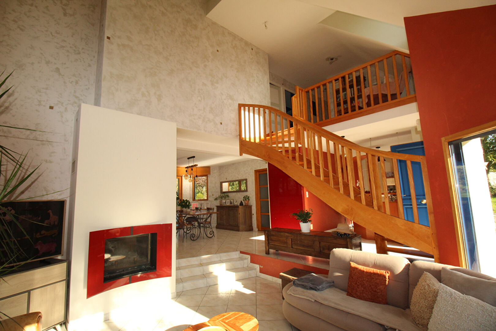 Belle maison contemporaine de 2002 comprenant un salon cathédrale avec cheminée, un séjour donnant sur terrasse, cuisine A/E et suite parentale en rdc. A l'étage, 4 chambres dont une avec balcon, mezzanine, salle de bains et wc. Garage double et carport.