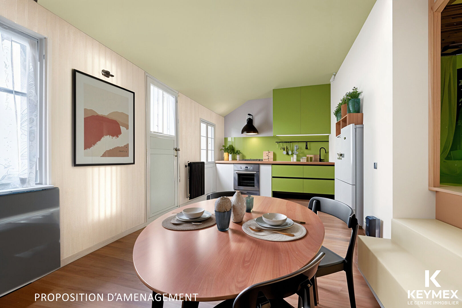 Avec ses 37 m² habitables, elle propose un séjour avec cuisine ouverte, une chambre, une salle d'eau et un WC.