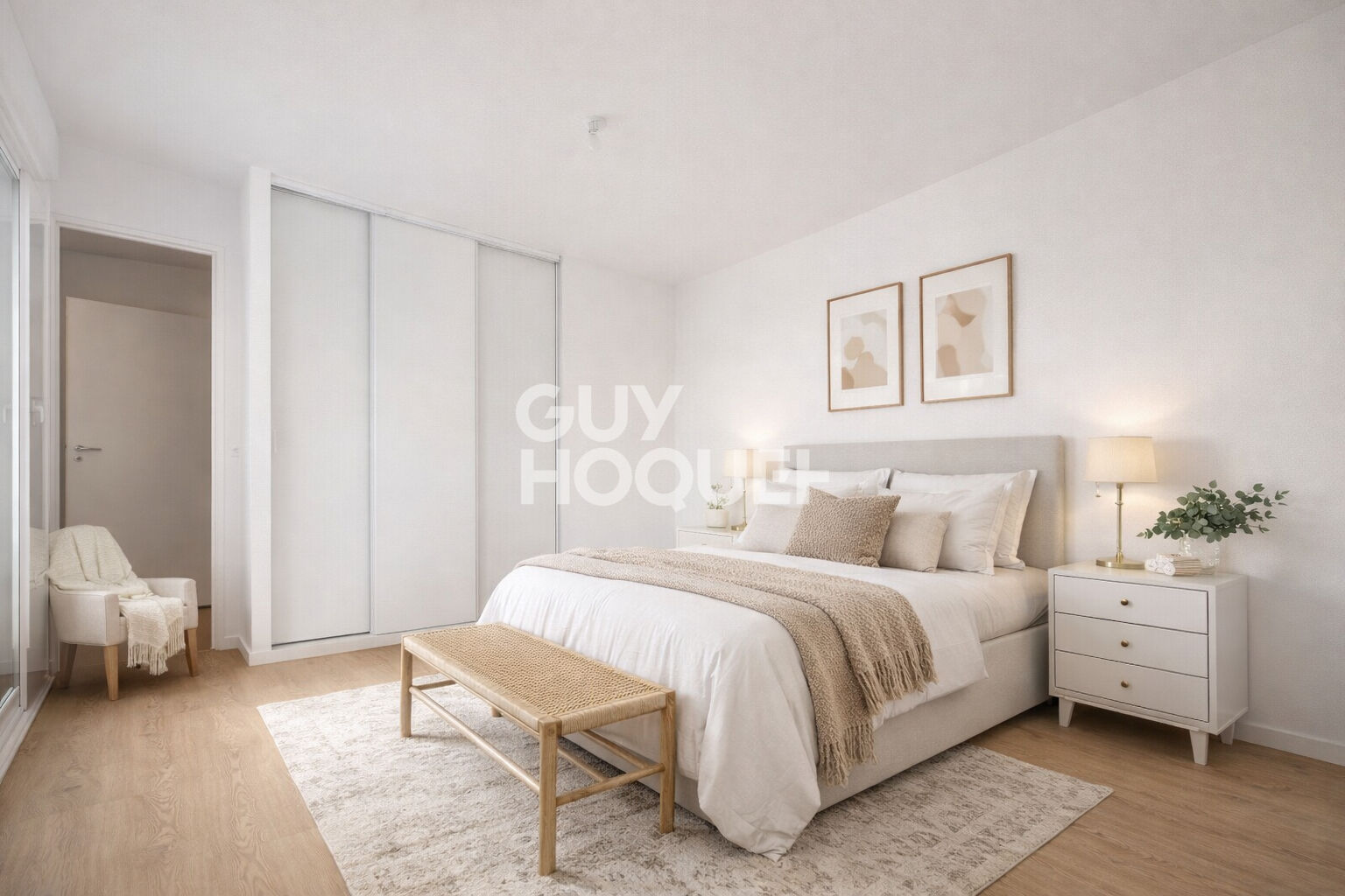 Trois véritables chambres, bien proportionnées et dotées de rangements intégrés, offrent un cadre paisible et harmonieux.