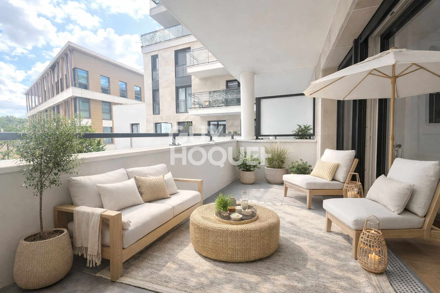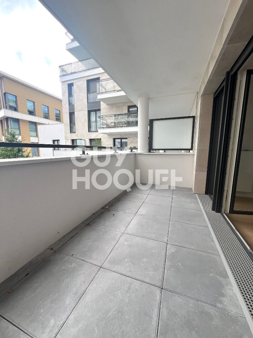 Le séjour spacieux et lumineux accueille une cuisine ouverte moderne, créant un espace convivial et fonctionnel. L'ensemble s'ouvre sur un balcon de 6 m², parfait pour les repas en extérieur ou les moments de détente.