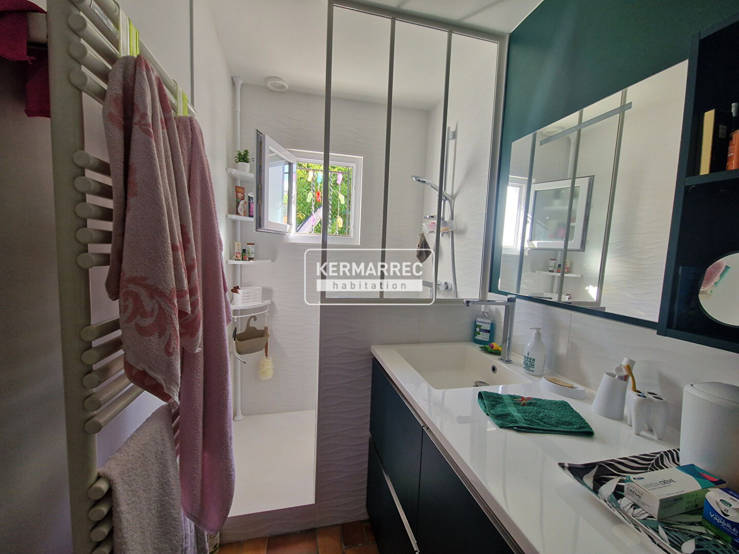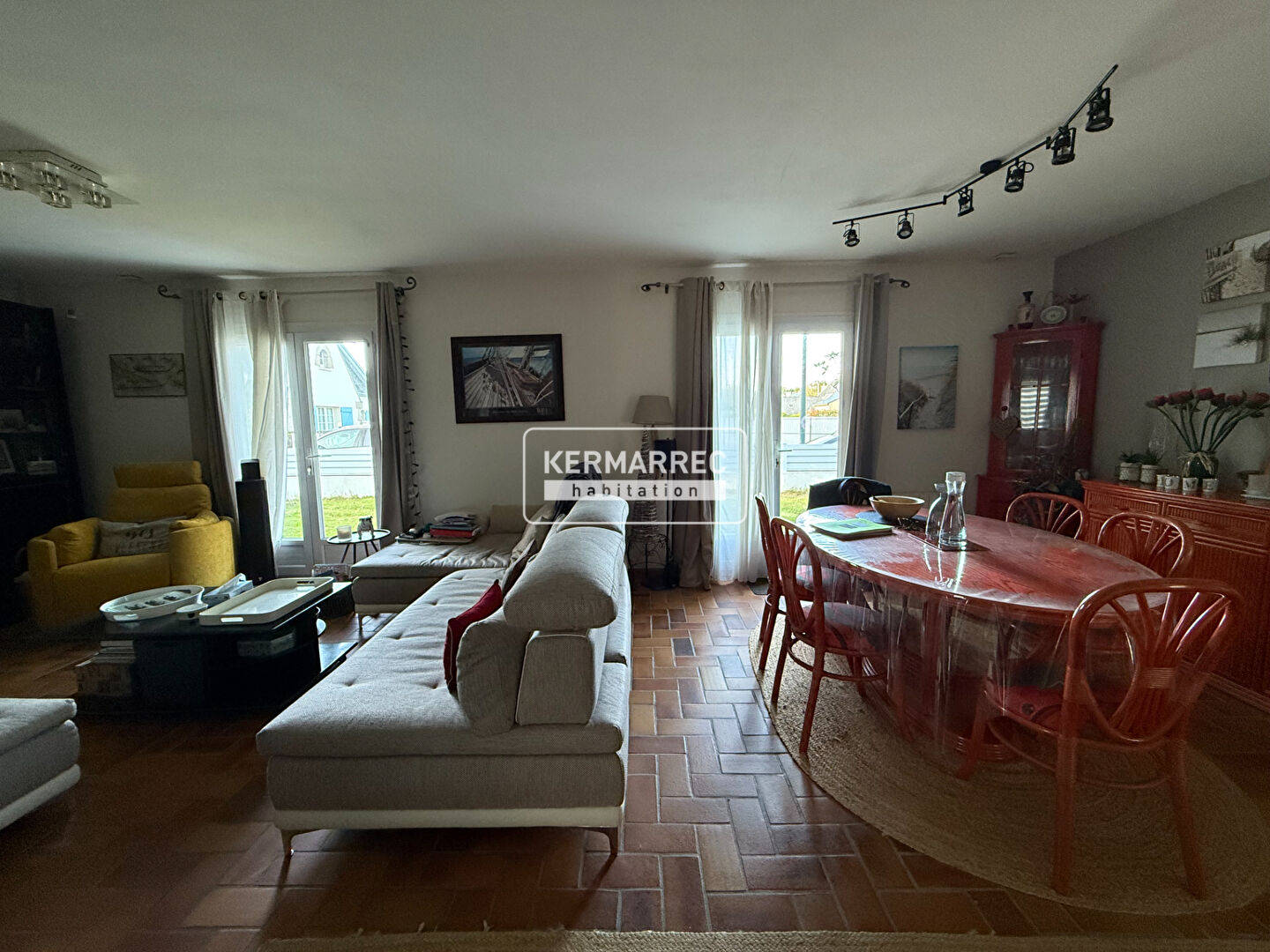 KERMARREC vous propose cette jolie maison de 123 m² habitables situé proche des plages et des commerces ! La maison est composée au rez-de-chaussée d'une entrée, salon-séjour de près de 35 m² avec cheminée insert, cuisine, bureau, une chambre, une salle d'eau et un wc. A l'étage : trois chambres, dressing et salle d'eau avec wc. Un grand garage d'environ 25 m², une terrasse et un jardin viennent compléter l'ensemble. Référence : 39445.