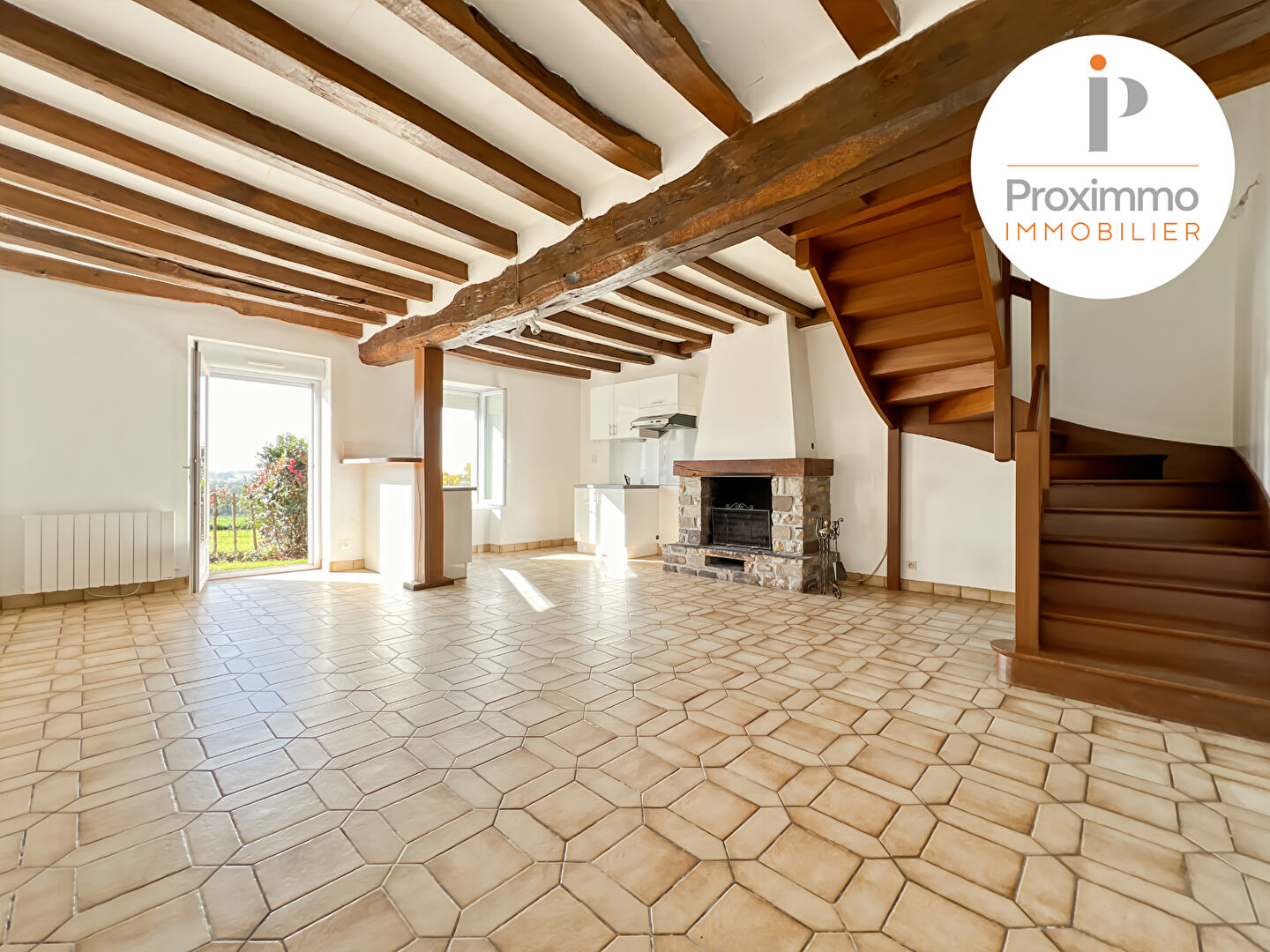 Au rez-de-chaussée, vous découvrirez une belle pièce de vie lumineuse d'environ 30 m², agrémentée d'une cheminée, ouverte sur une cuisine aménagée.