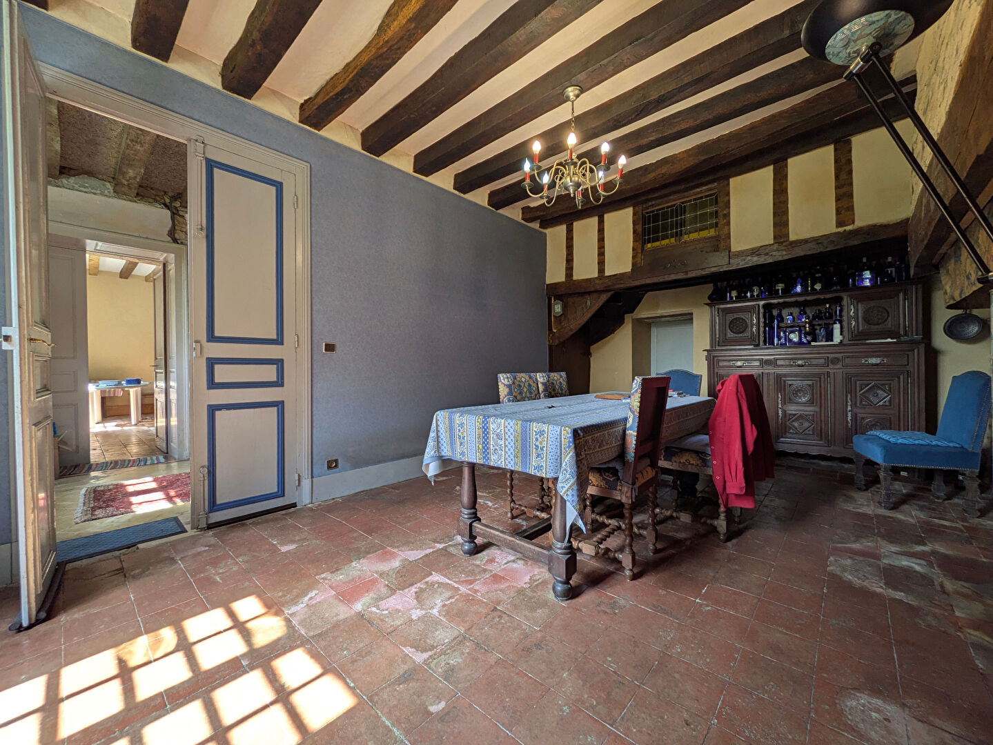 Implantée sur un terrain arboré de plus de 8 000 m², sans vis-à-vis, cette bâtisse en pierres apparentes et toiture en ardoise séduit par son charme intemporel : hauts plafonds, parquets anciens, tommettes, et de beaux volumes à réinventer.