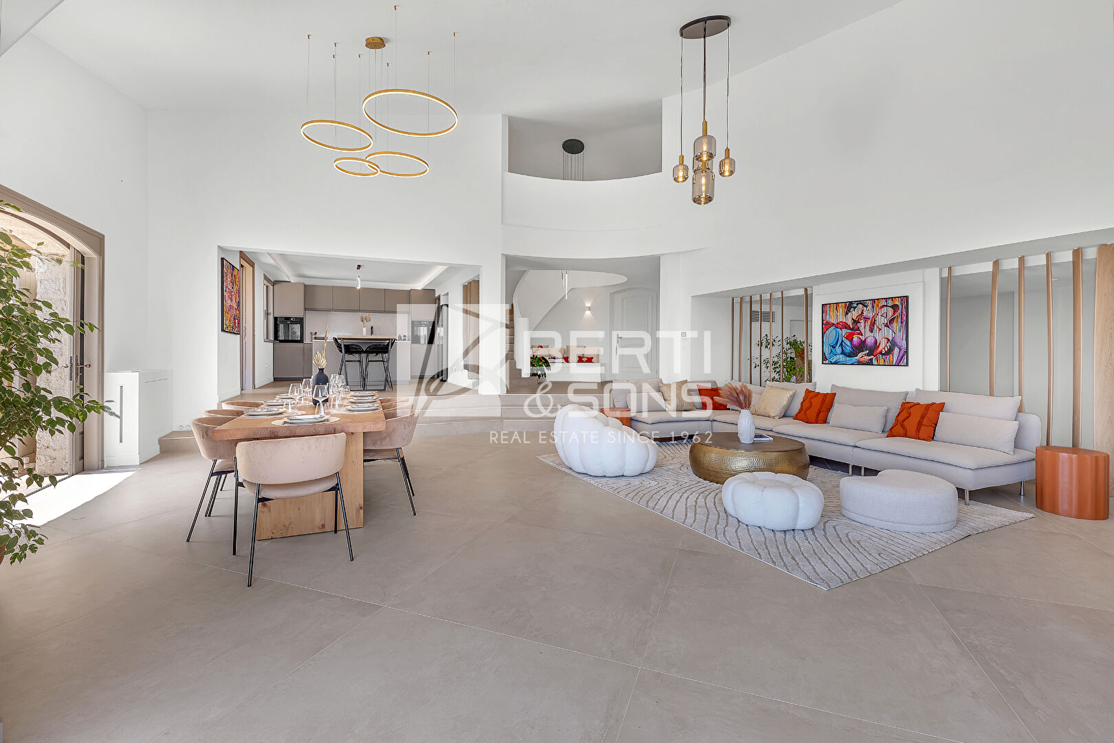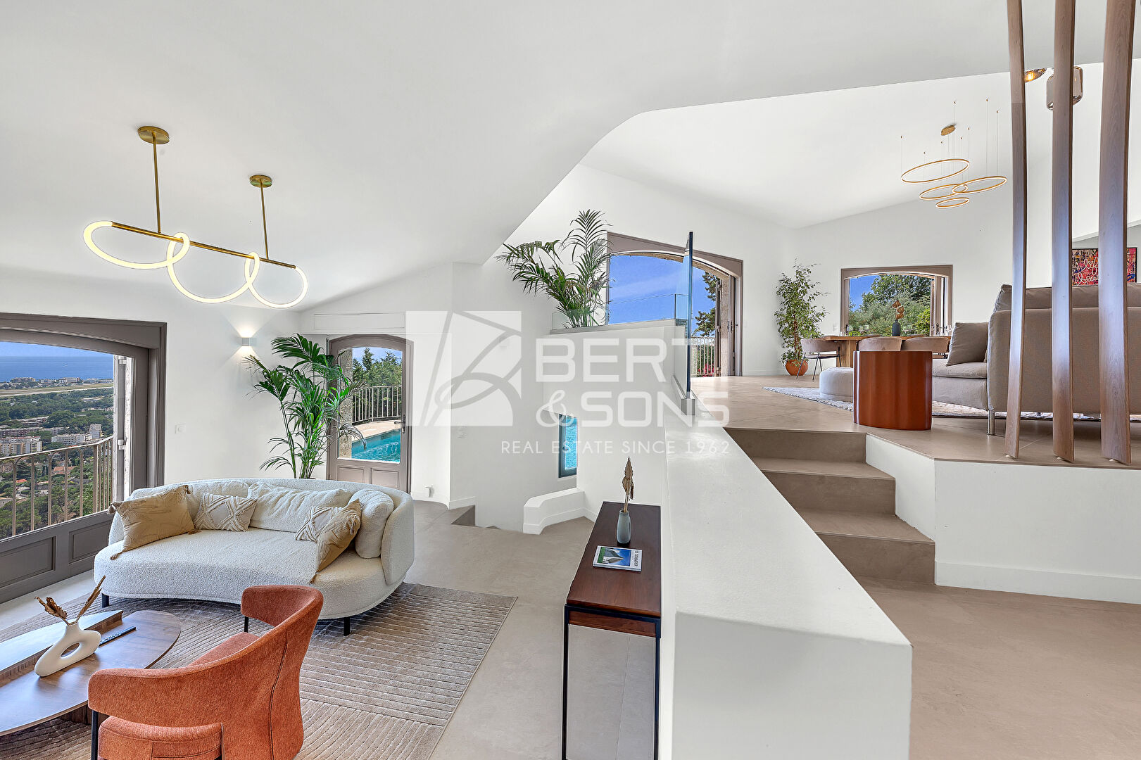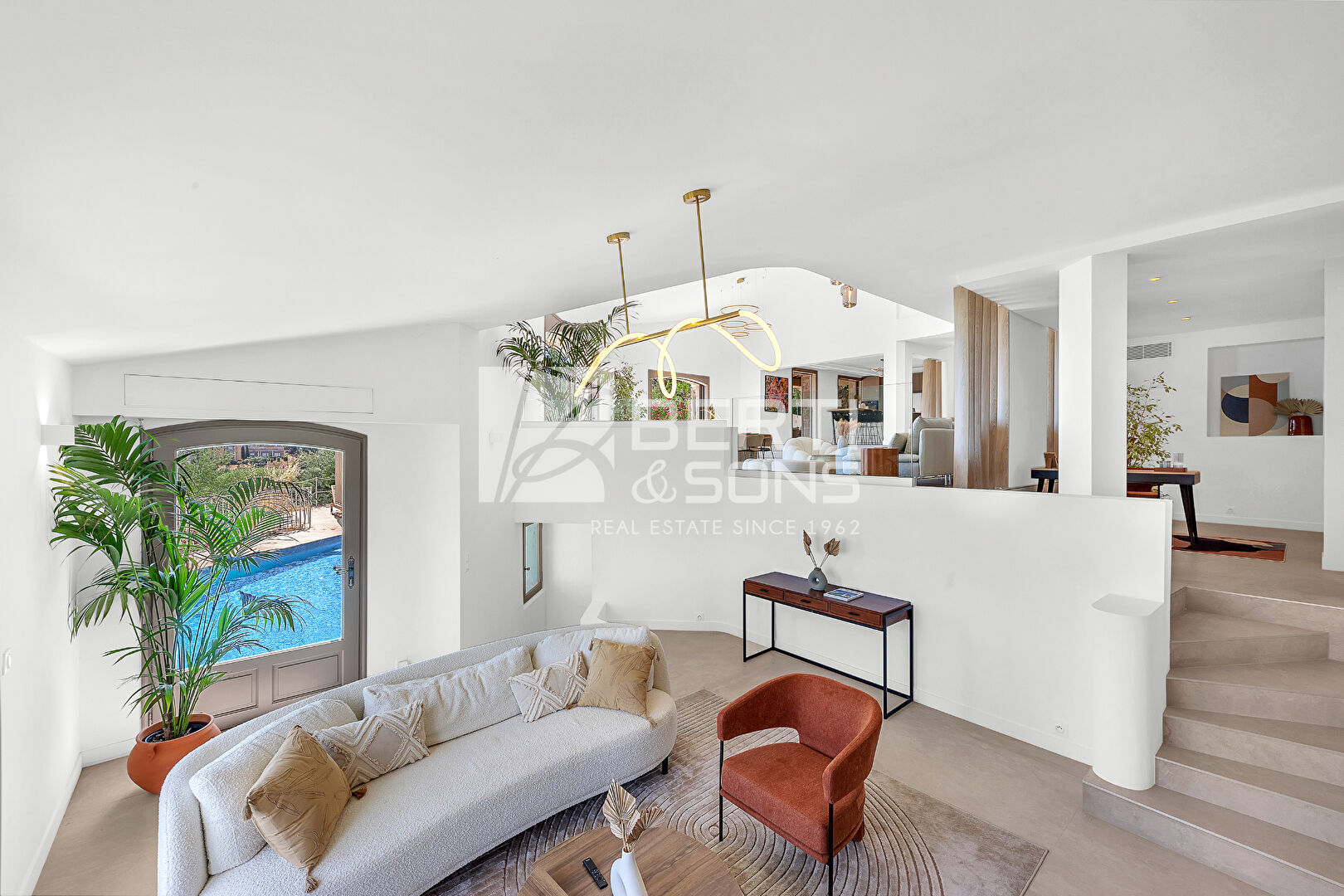 Le groupe immobilier Berti and Sons vous propose à la vente cette villa d'exception entièrement rénovée avec des matériaux haut de gamme, située sur les hauteurs résidentielles de Mandelieu-La-Napoule. Elle offre une vue à couper le souffle sur la mer, les îles de Lérins et l'Estérel.