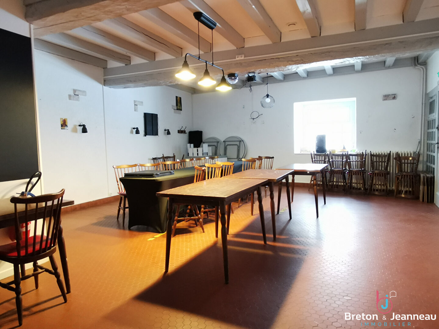 À Bais, en Mayenne, nous vous proposons à la vente cet immeuble de rapport comprenant une partie habitation et une partie commerciale (activité de bar / restauration). Locataires en place, loyer mensuel 622 euros. Taxe foncière à la charge du propriétaire.