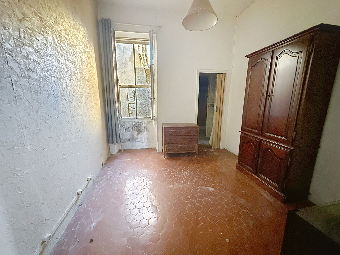 En rez de chaussée un studio de 21m2 à rénover avec cour de 3m2 ainsi qu'un débarras ensuite au 1er étage, un duplex de 84m2 à rénover comprenant salon-séjour, cuisine, une chambre, salle d'eau, un bureau et un wc. Au 2éme étage, deux chambres sous les toits de respectivement de 12 et 10m2 ainsi que des placards.