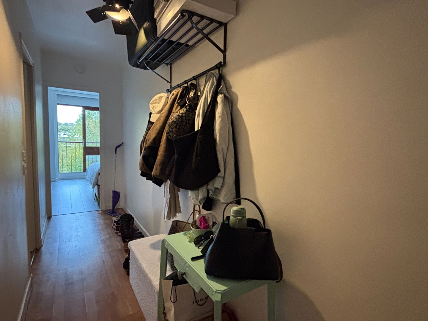 Très bien situé dans un cadre calme et verdoyant ,en étage élevé, à proximité des bus et des commerces , beau studio double en parfait état et très lumineux comprenant une entrée desservant une salle de bains avec wc , une partie jour avec cuisine équipée et une partie nuit.