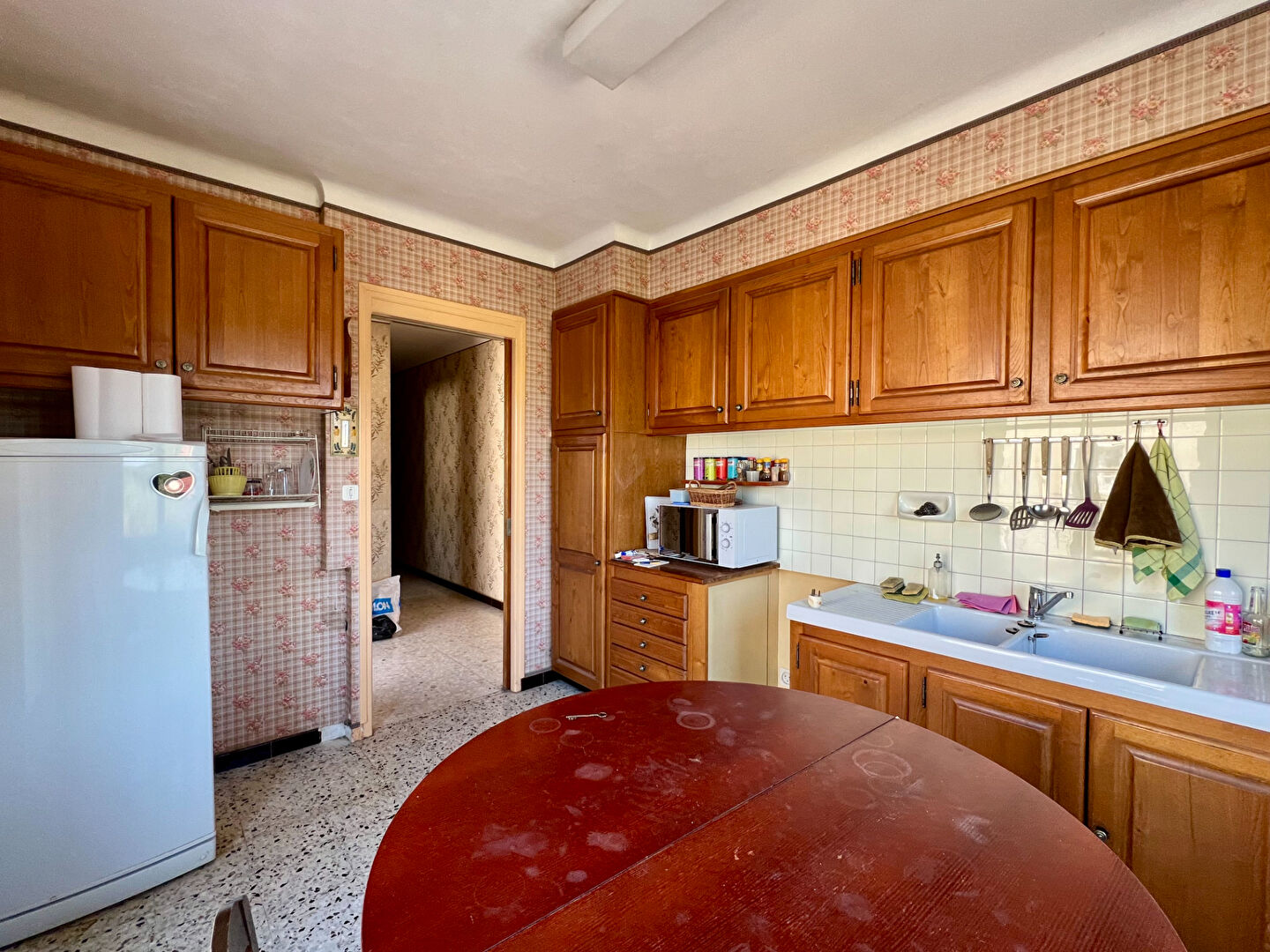 A l'étage : une surface habitable d'environ 100 m² comprenant un séjour lumineux avec cheminée et balcon, une cuisine indépendante ouvrant sur une terrasse, quatre chambres avec placards (dont une avec point d'eau), une salle de bains et des toilettes séparées.
