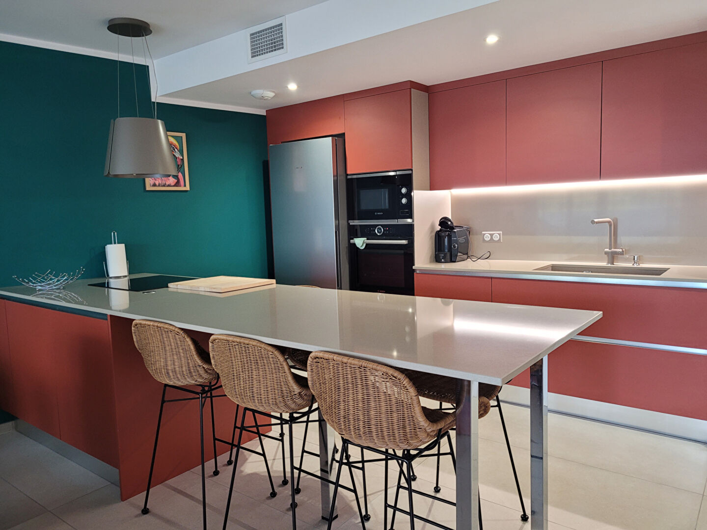 Canet Plage dans immeuble récent spacieux T3 d'angle vue direct sur le lac et Canigou avec une terrasse de 68 m². Entrée, séjour avec cuisine US haut de gamme de 37 m², Cellier, 2 chambres, Dressing, Salle d'eau. Pour son confort climatisation réversible gainable. Cuisine d'été. Garage de 18 m². Résidence sécurisée de 2023. Possibilité de mettre un Jacuzzi sur la terrasse. Coup coeur assuré. A visiter dans tarder !