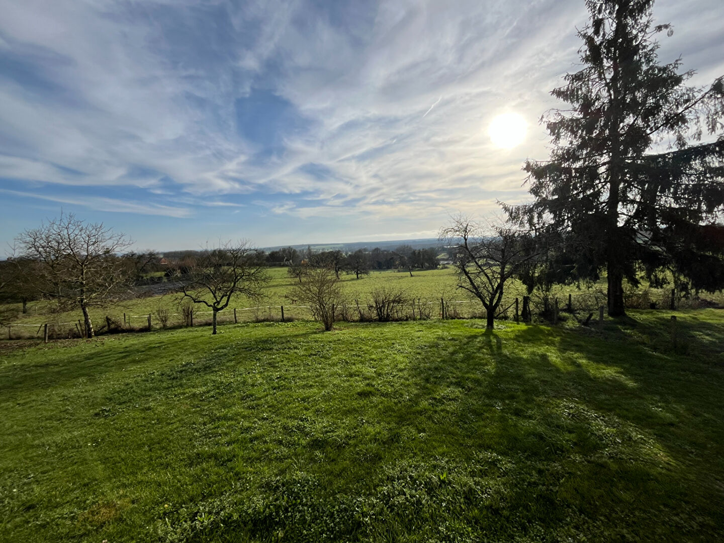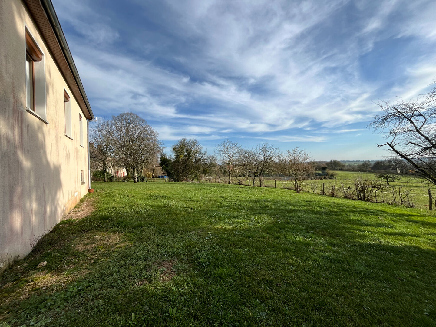 jardin clos attenant d'environ 1000m², belle vue dégagée sur la campagne.