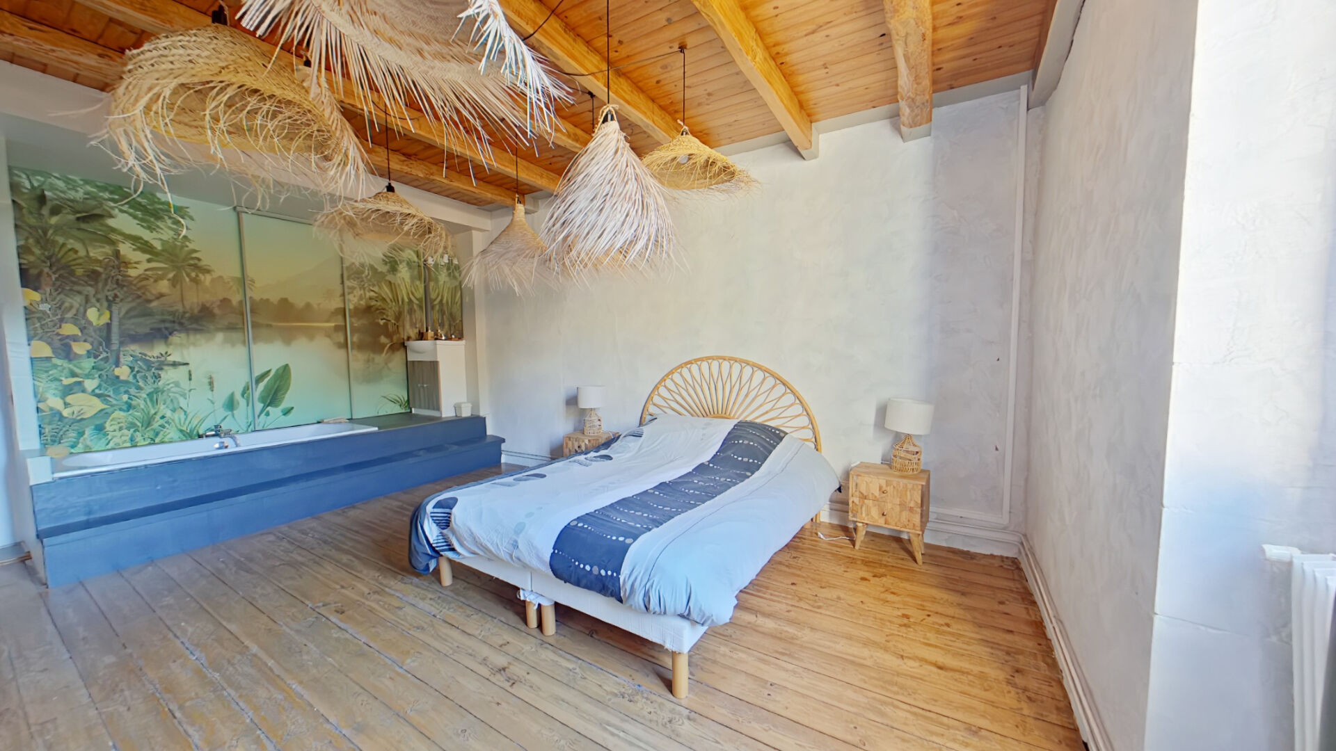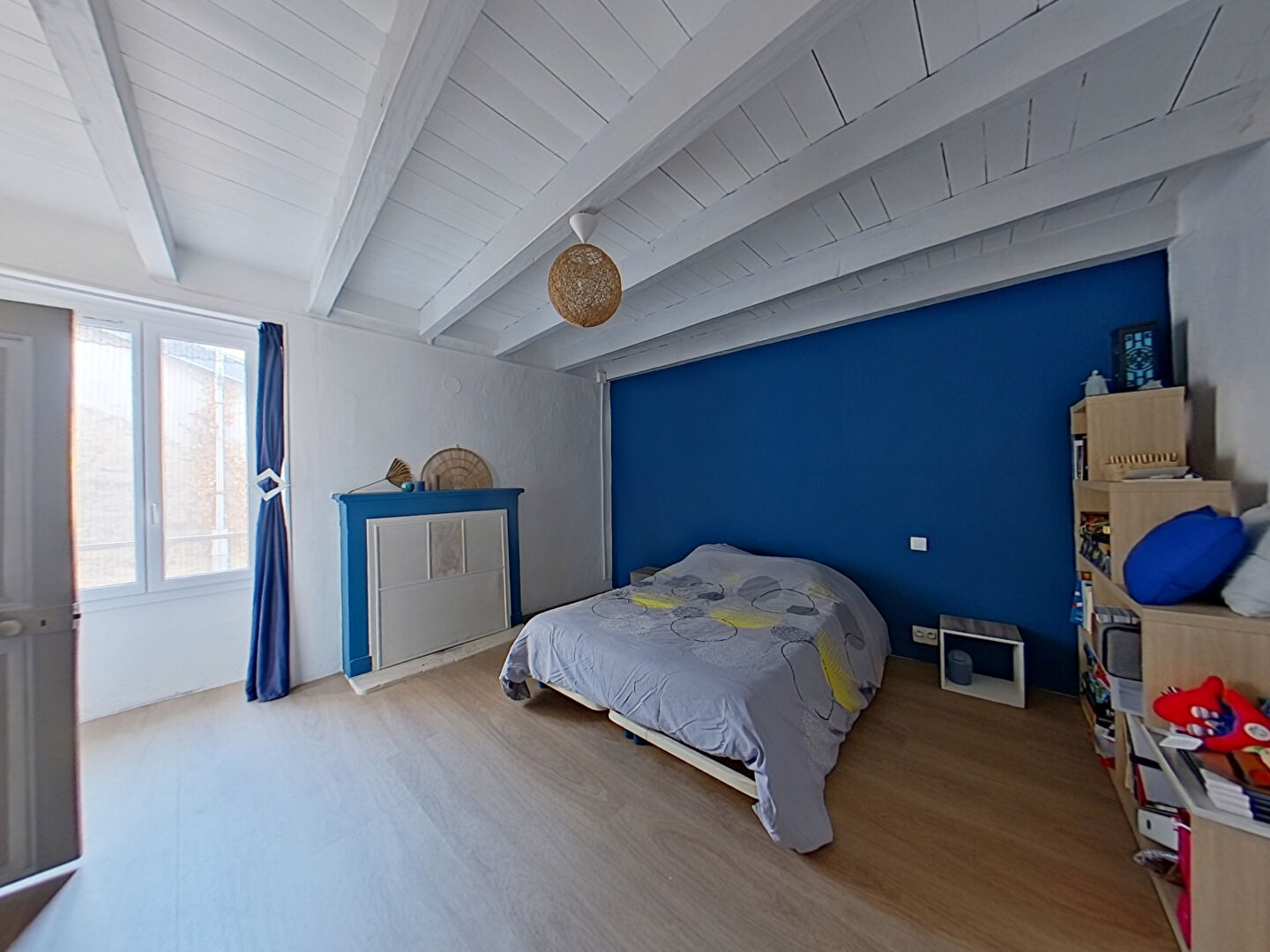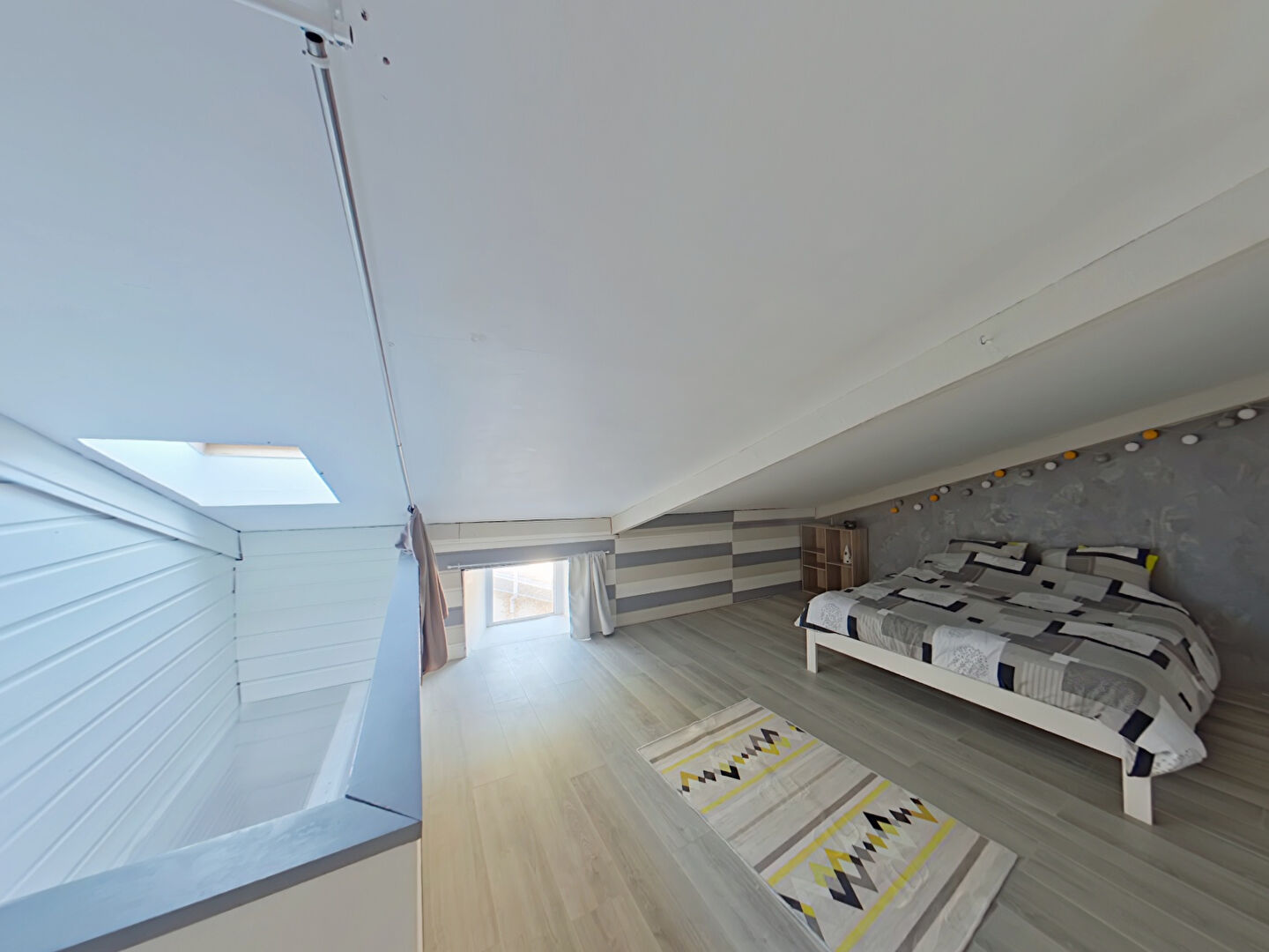 Au grenier, une chambre aménagée, une partie pouvant être aménagée.